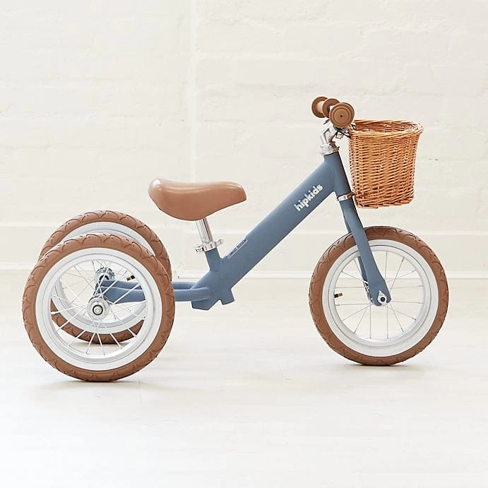 This adorable vintage style 2 in 1 Steel Trike/Balance Bike comes with a removable handmade Rattan Wicker Basket.Â