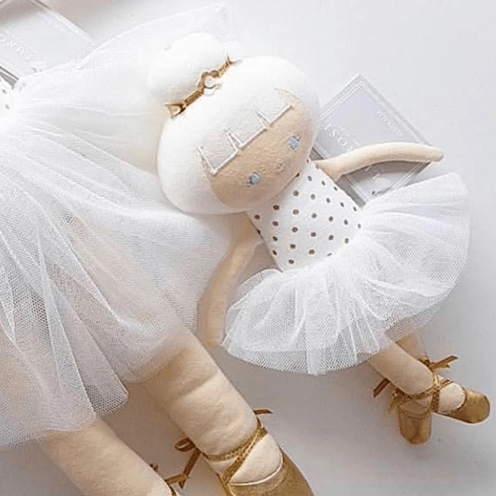 This pretty Alimrose Baby Ballerina Doll features a gorgeous ivory spot print and a soft tulle tutu