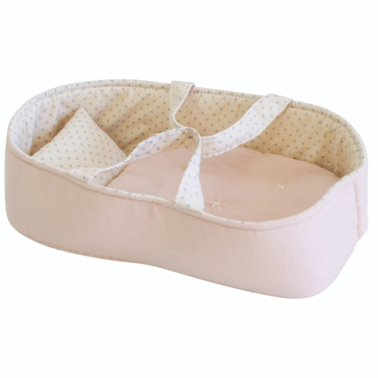 The Alimrose Playtime Doll Carrier is a sweet reversible fabric nesting basket with a mini quilt and pillow.Â