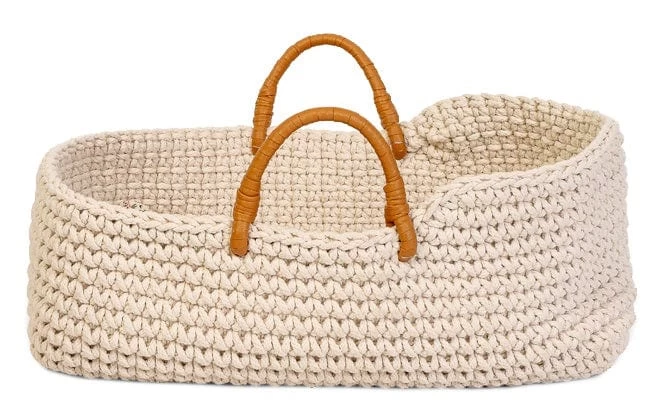 The doll basket is hand-knitted in 100 % cotton with a PU Leather covered handle.