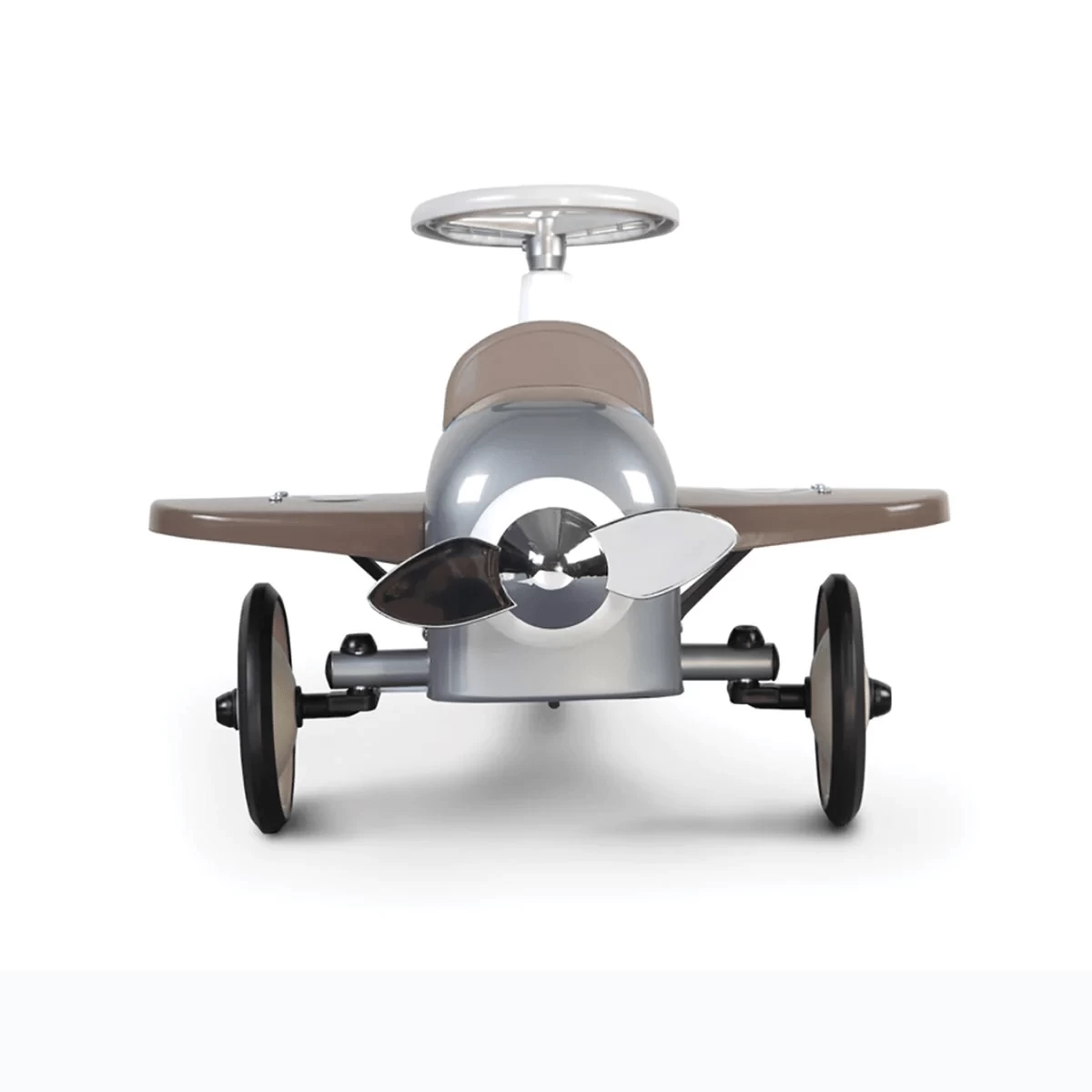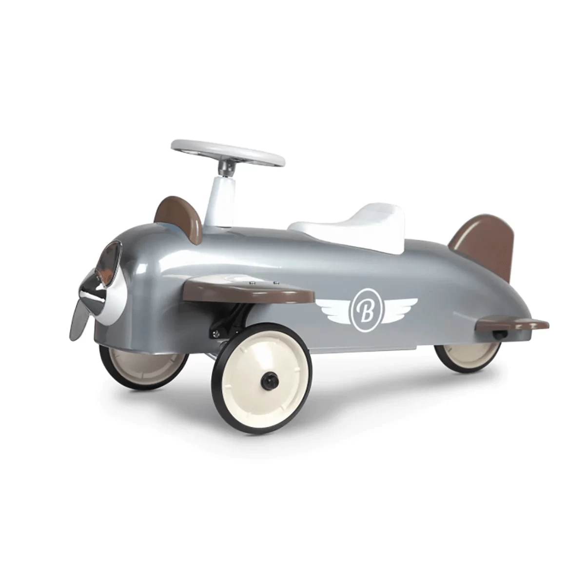 Our Speedster Aeroplane is suitable for toddlers aged 1 and above. No question of skimping on safety. Our ride-on is fitted with 3 tyres, two at the front and one at the back. These ensure stability and give the vehicle excellent road-holding abilities on the runway of your living room floor. It moves silently. The cabin is made of strong metal to resist impacts of rough play by little ones. The flight hours will run at full speed when they pilot the aircraft!