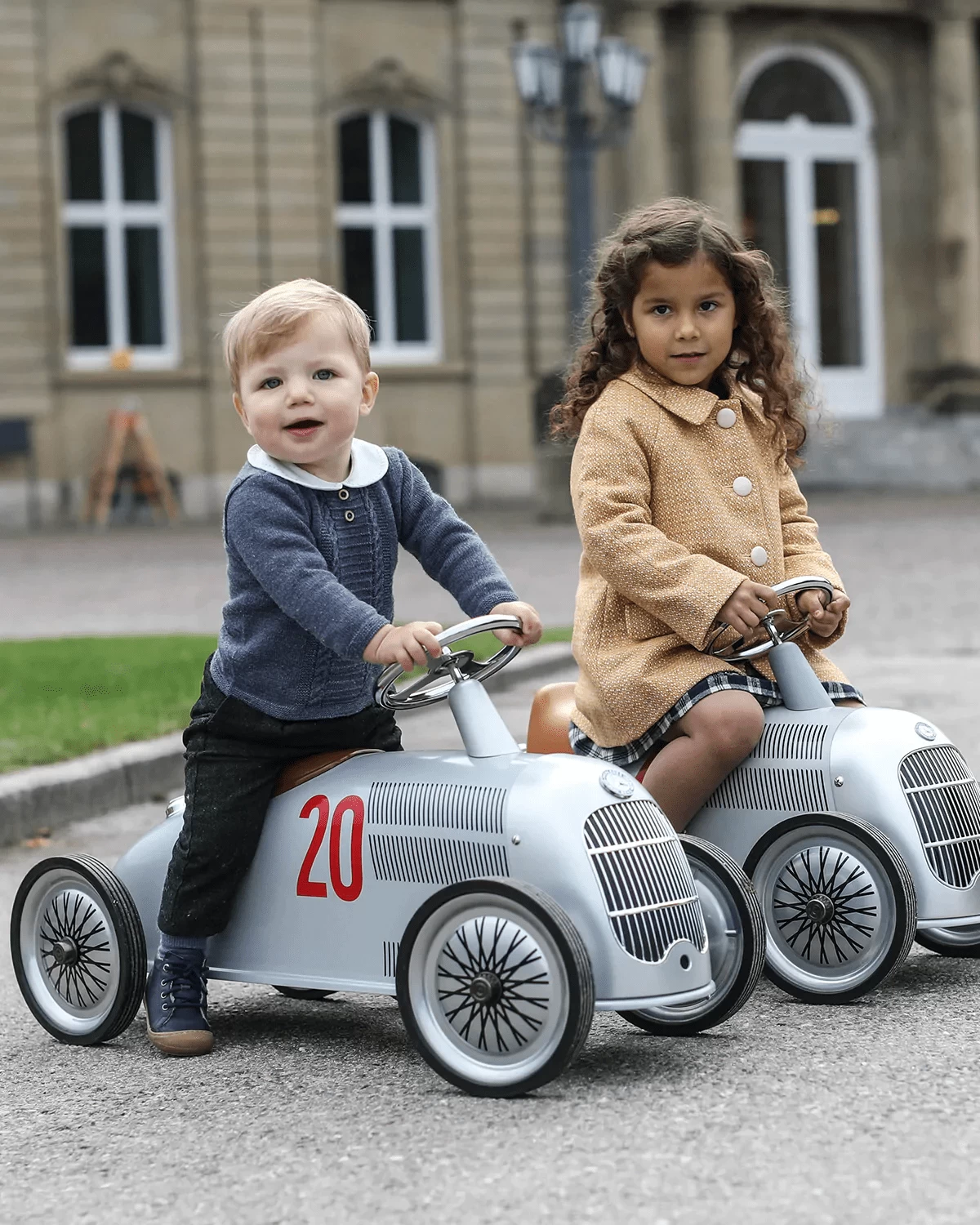 Made entirely of metal to closely match the legendary Mercedes W25, this toy is even licensed to bear the Mercedes-Benz logo on the front. It has everything that will make it a perfect choice of first racing car for your child. From the age of two, your child will be able to safely set off in search of adventure, but always with a speedy champion look! That’s called the “Silver Arrow” effect!