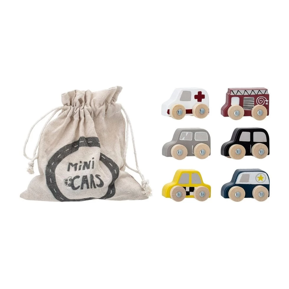 This beautiful toy cars set of 6 in drawstring bag by bloomingville is a great little set which is perfect to play with the city rug also made & designed by Bloomingville.