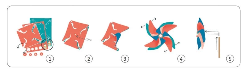 This set is a great educational lesson while also allowing children to explore their creativity. Using the provided precut sheets, children can create their own windmills. Then head outside and watch them spin. Great for playdates, school holiday activities, birthday parties or crafting days.Â