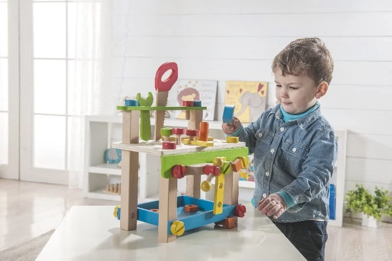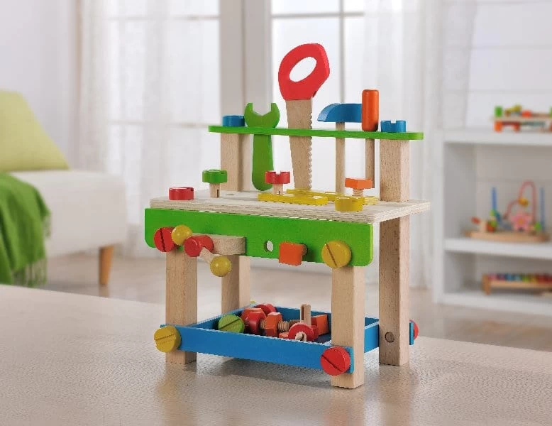 Little kids love playing with tools. Teach your child about different jobs and how tools can be used to make things. This set comes includes saw, wrench, hammer, easel, nuts and bolts, storage compartment, vice and other removal parts.