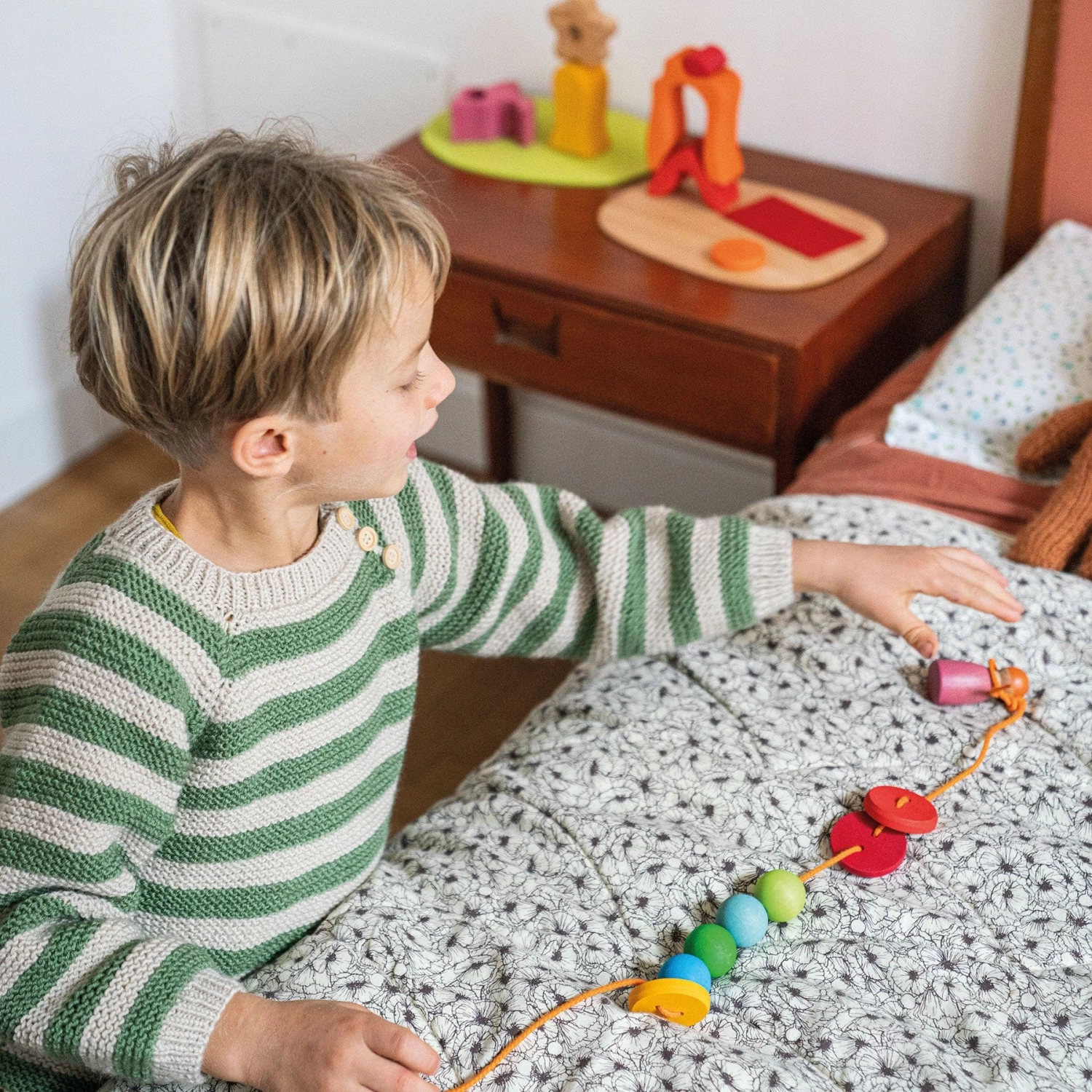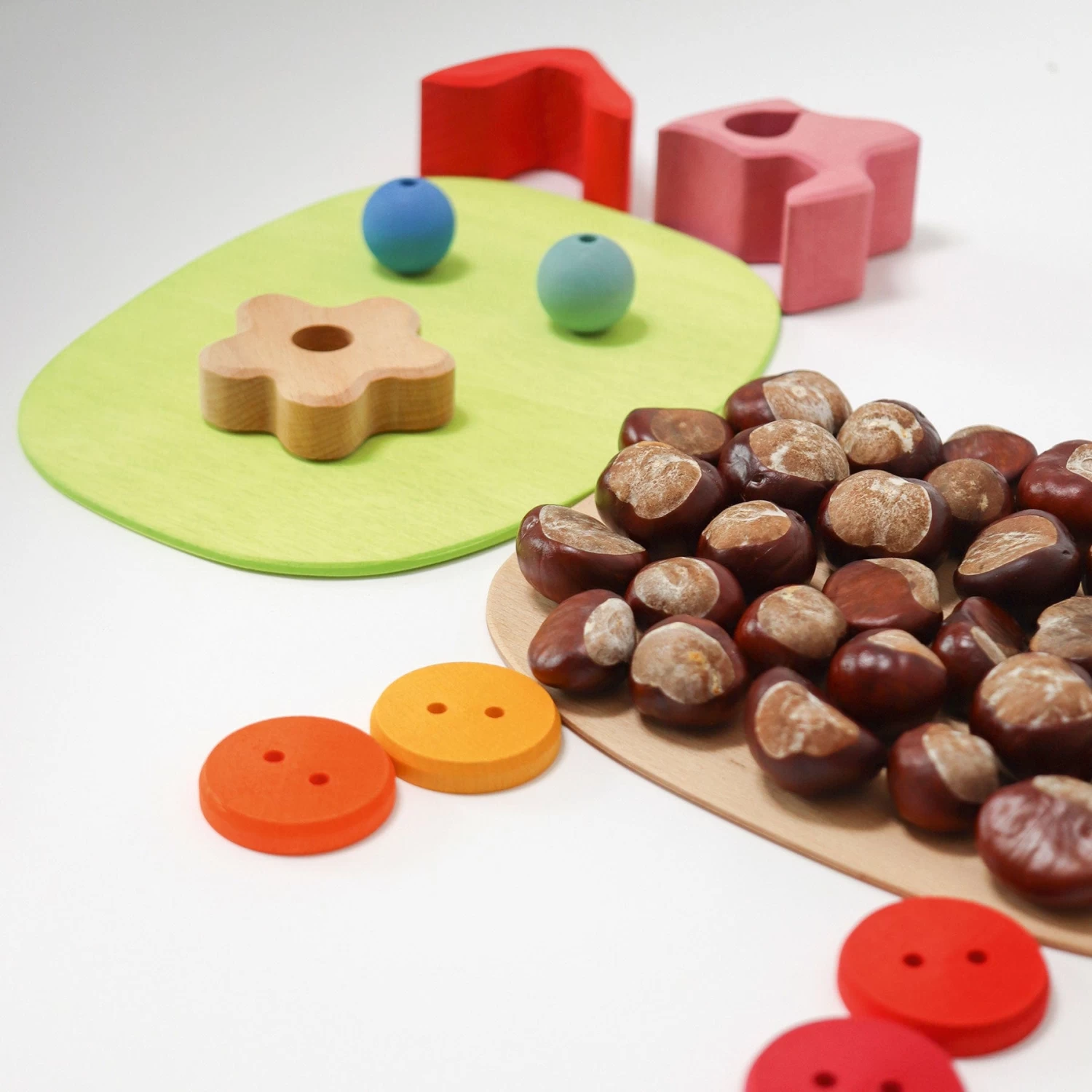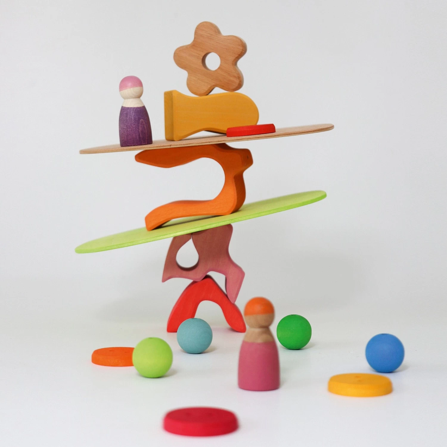Grimm’s love wood because it is a natural material, so it always has various markings that show up in our products, making each one unique. Grimm’s toys are always one of a kind, carrying unique marks made by nature. Wood grain has changing structures and colours which serve as proof of its natural origins. The unique variations are proof of quality, not defects.