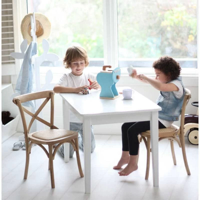 These Cross Back Style Hampton Kids Chairs are made from Solid Timber sealed in a clear non toxic varnish. It’s perfect for kids aged 4 and 8.