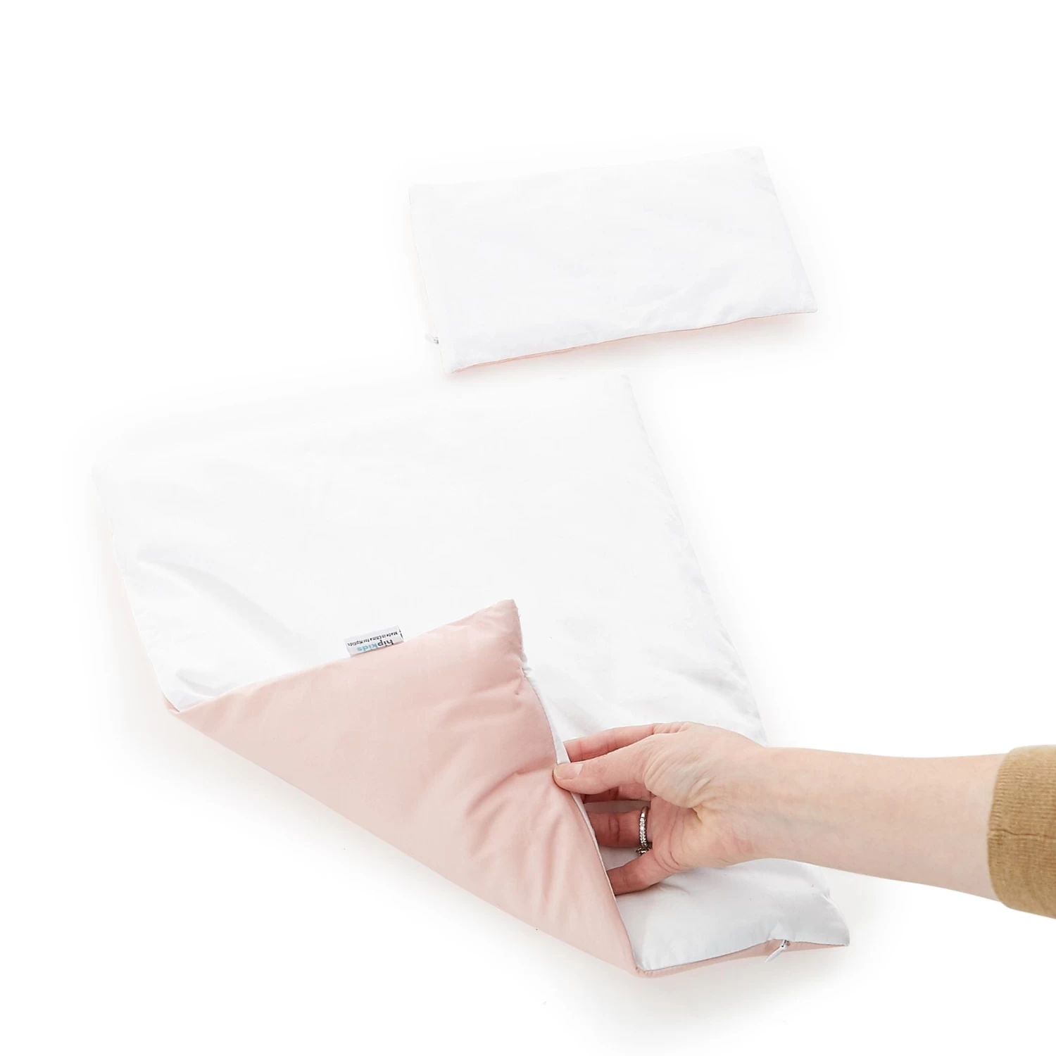 These Dolls Bedding are reversible. This super cute set includes: A doll’s quilt and doll’s pillow made from soft cotton fabric and filled with polyester.Â
