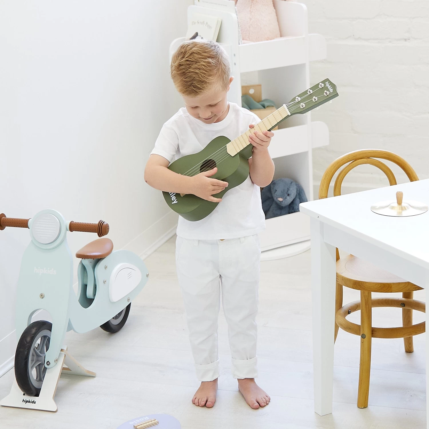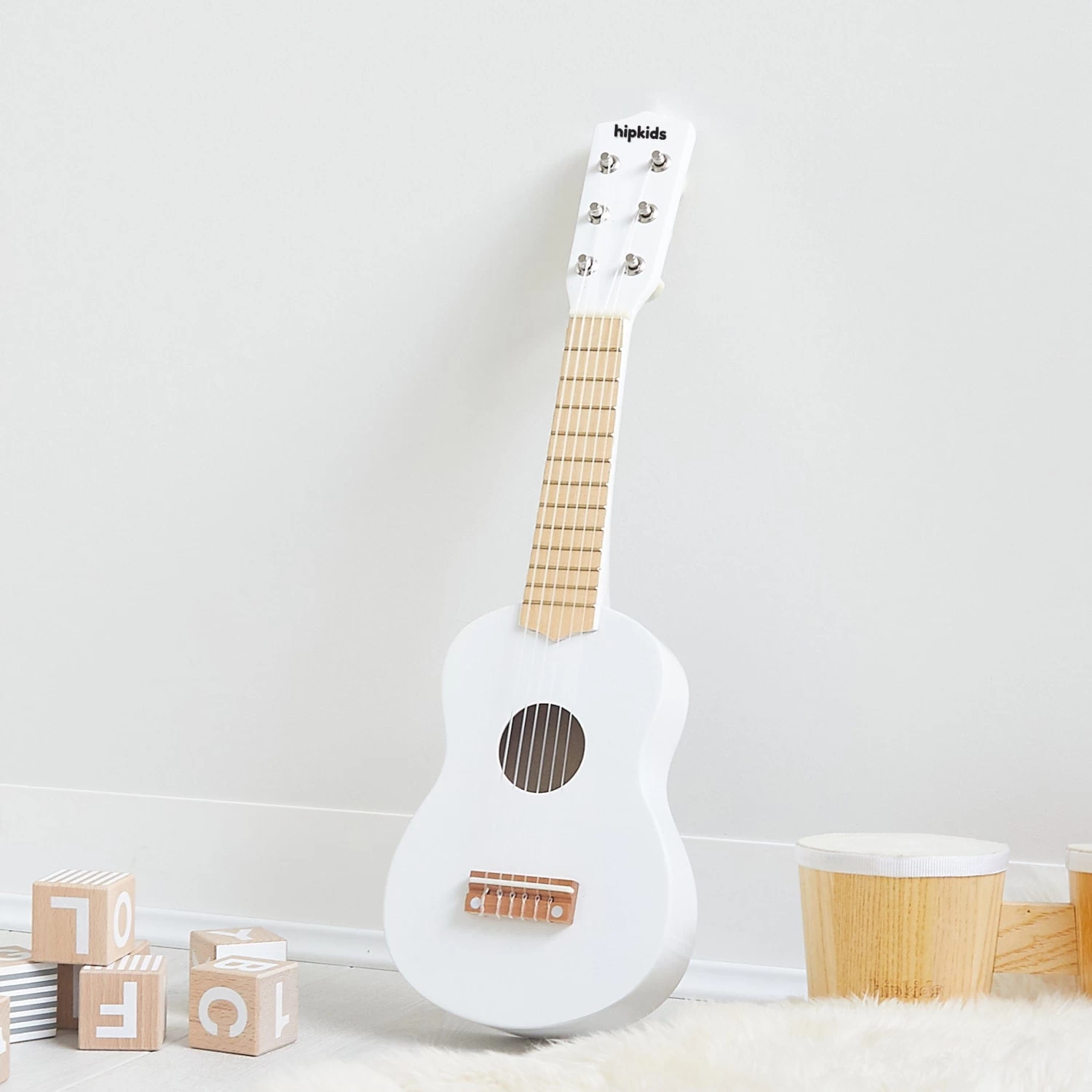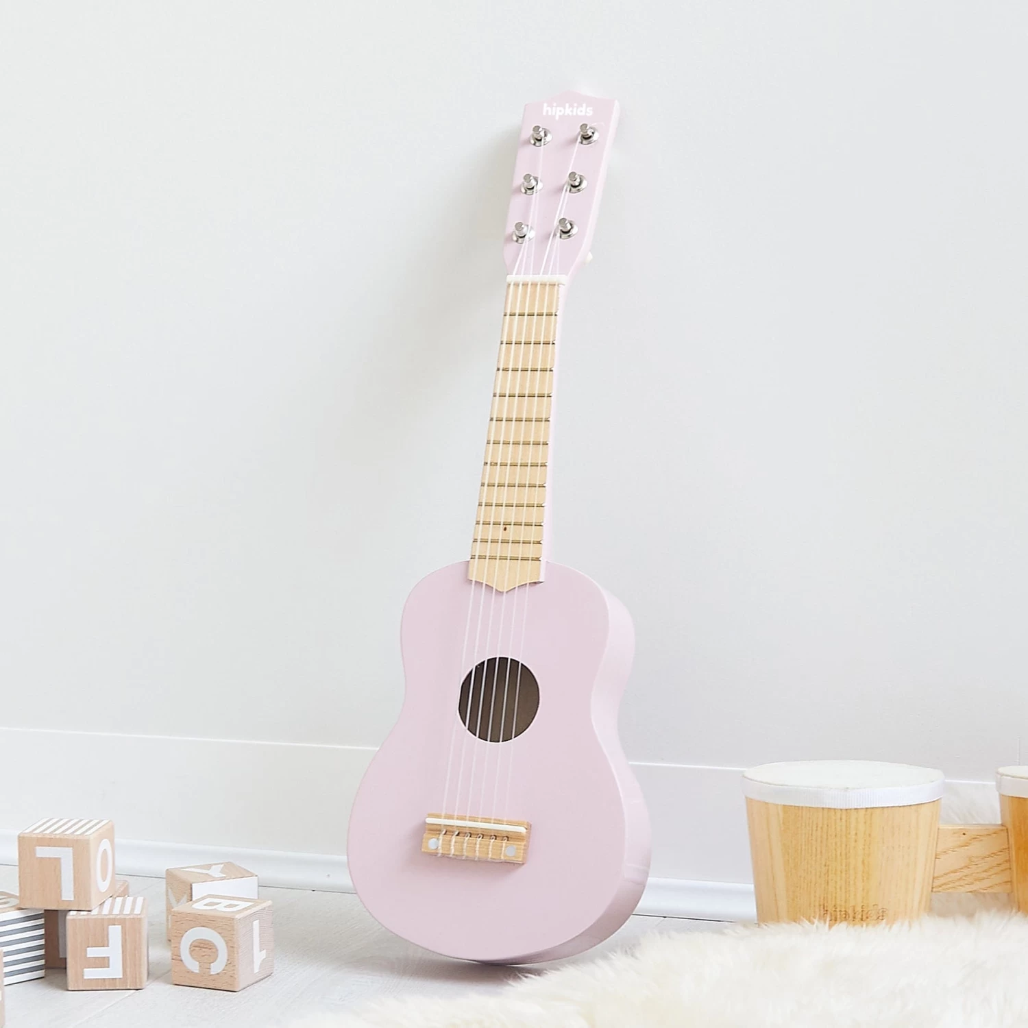 You can introduce your little one to the joys of guitar playing with this beautiful HipKids Wooden Toy Guitar . It’s available in 3 trending colours: blush pink, grey & white