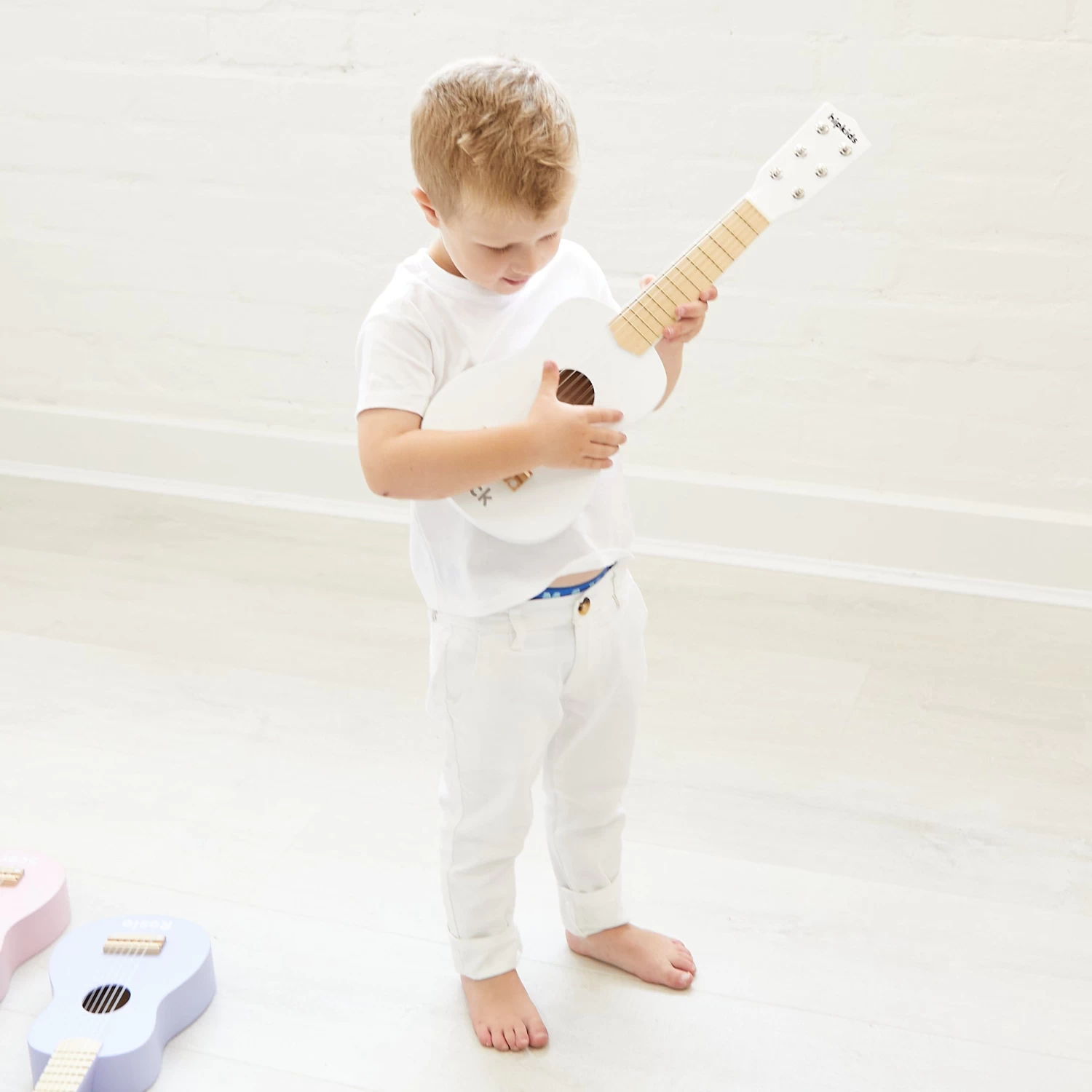 - Lets the child discover the basics of music & guitar playing.