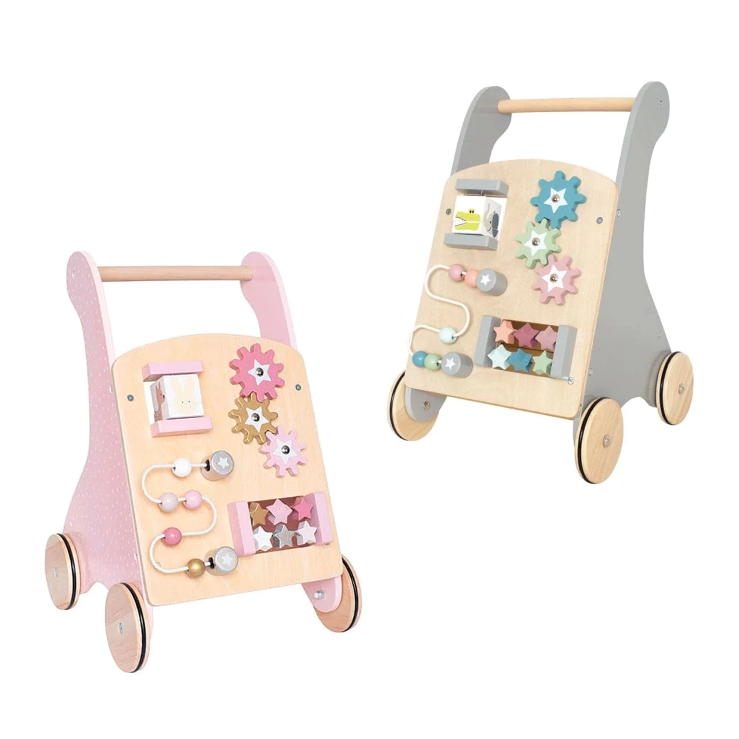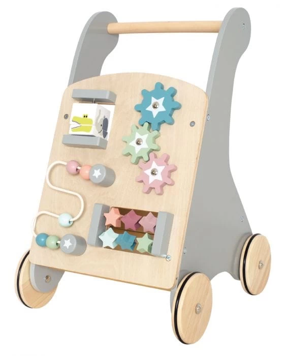 This new sweet activity wagon is a fun toy that helps your child to get on his own. It is also fun to play with as it has a lot of fun activities on the front. The wagon is combined with fun activity toys for the child to develop their senses and motor skills.