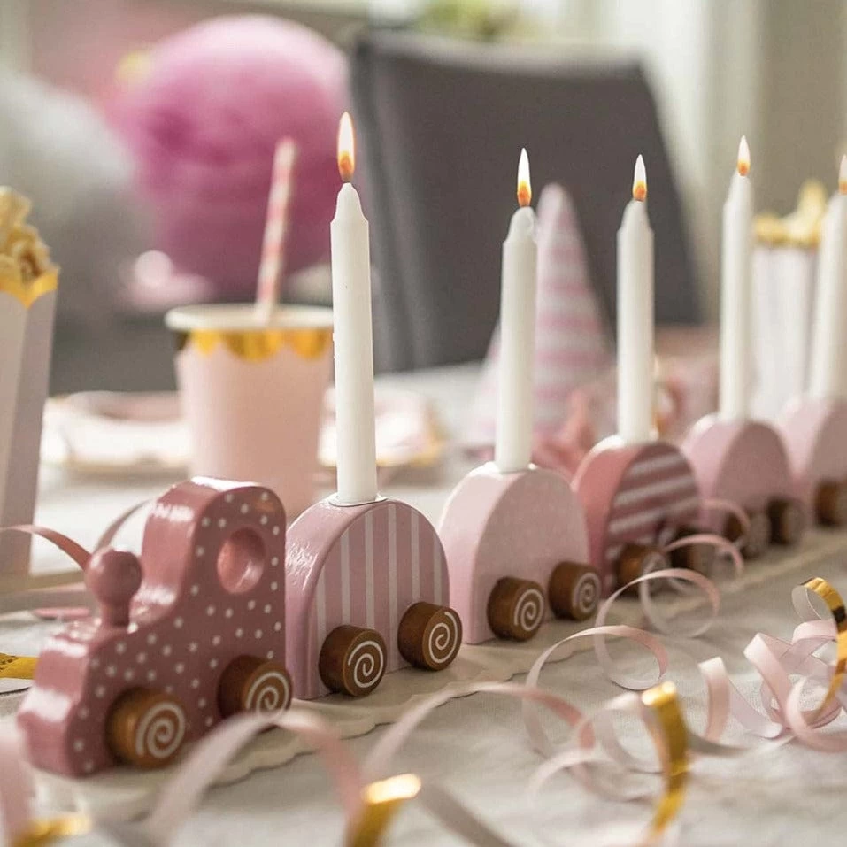 This Birthday train is accompanied with seven carriages that carry six birthday candles and a number between 0-9.