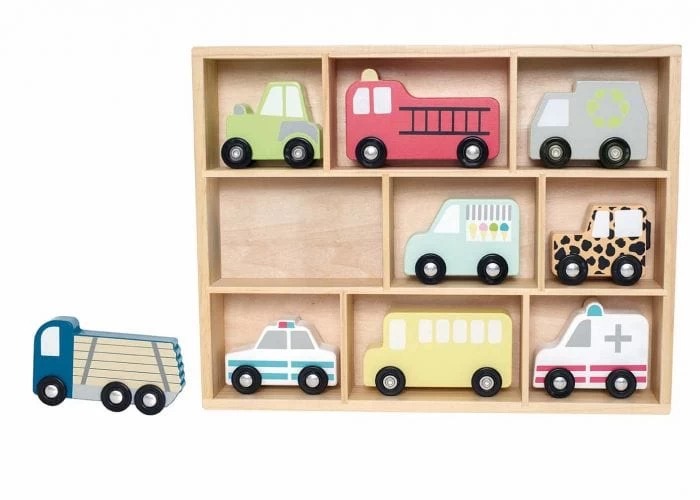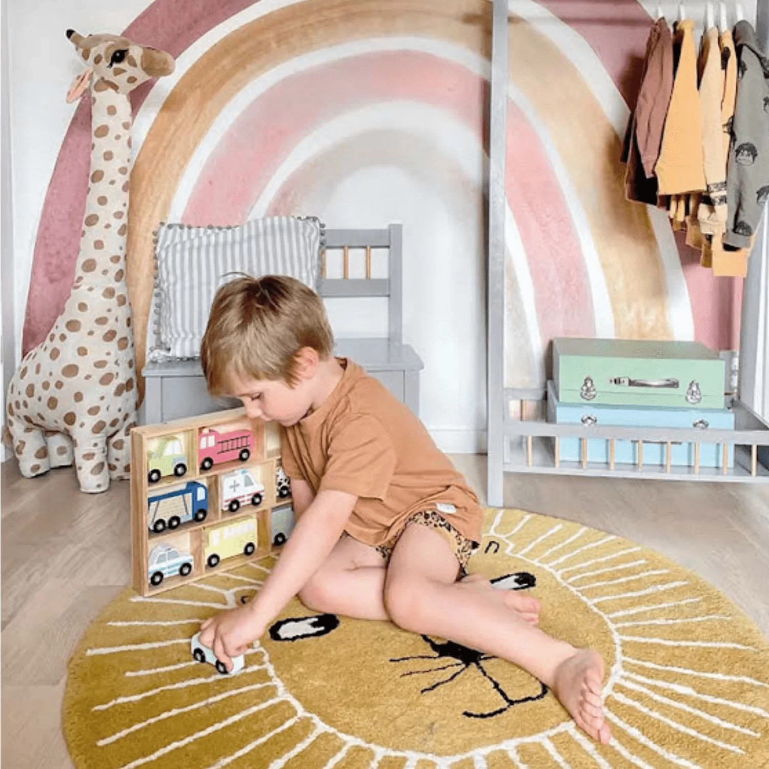 Practical shelf with associated cars to play with. Decorate the kids room with this practical shelf and let the kids play with the fun vehicles that are included. Of course, you can also have other small things on the shelf.