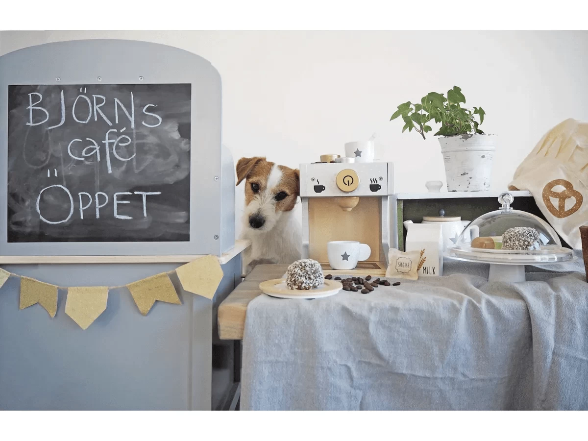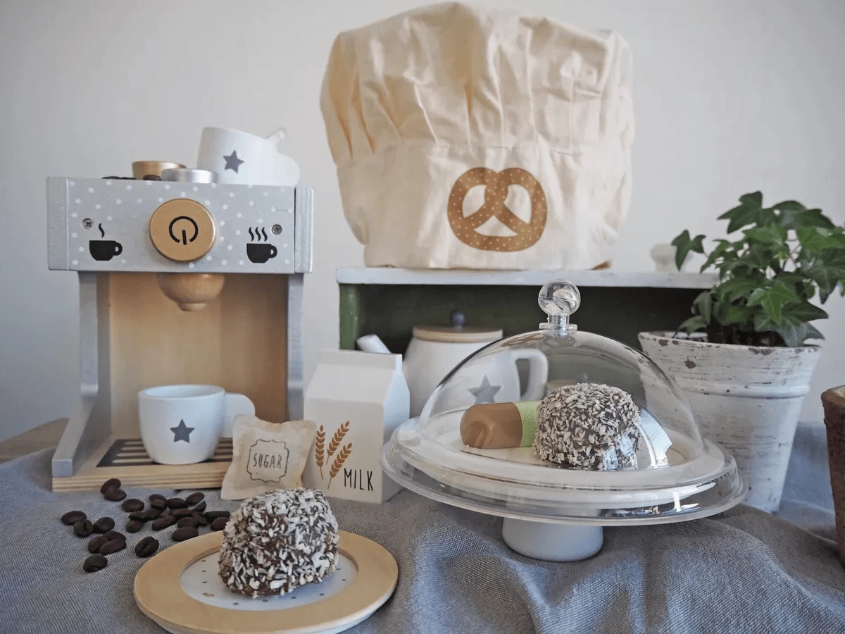 Now at last you can brew your own coffee and enjoy it with breakfast. However, our fine coffee maker will give you great freshly brewed coffee. A fun toy for all small children who enjoy playing café and serving coffee. Our coffee maker will quickly make you popular in the kitchen when it’s coffee time.