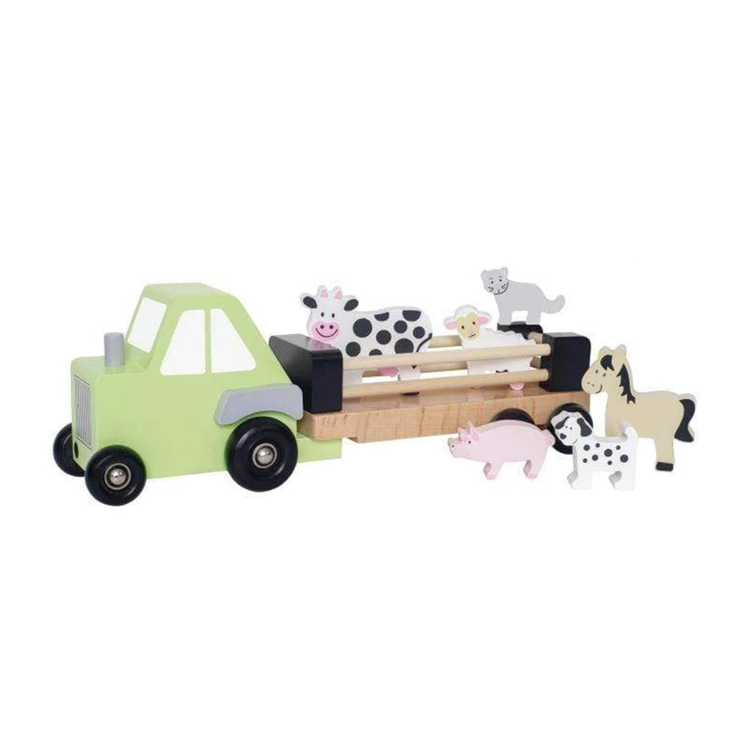 Children loves animals and will have great fun with this farm tractor. The tractor holds the most common animals found at the farm. Load the animals on and off the trailer and drive them around the countryside. You can detach the trailer as well and only drive around the truck.