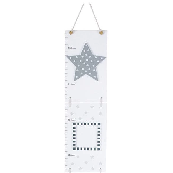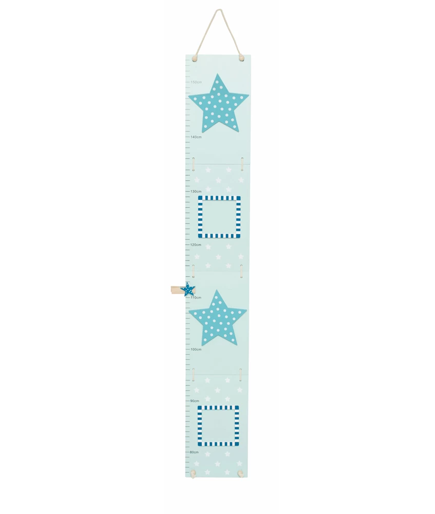 Cute growth chart with decorative pattern of stars and wooden ruler to hang on the wall in the children’s room. The growth chart also has room for 2 photos and can measures the child’s length between 75-155 cm. In addition to keeping track of the child’s length and development, it is also a decorative interior item for the children’s room.