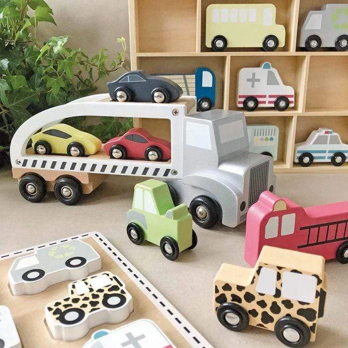 A fun wooden puzzle for the little ones with 9 different vehicles. The vehicle are shaped to fit into small hands and are easy to grab.