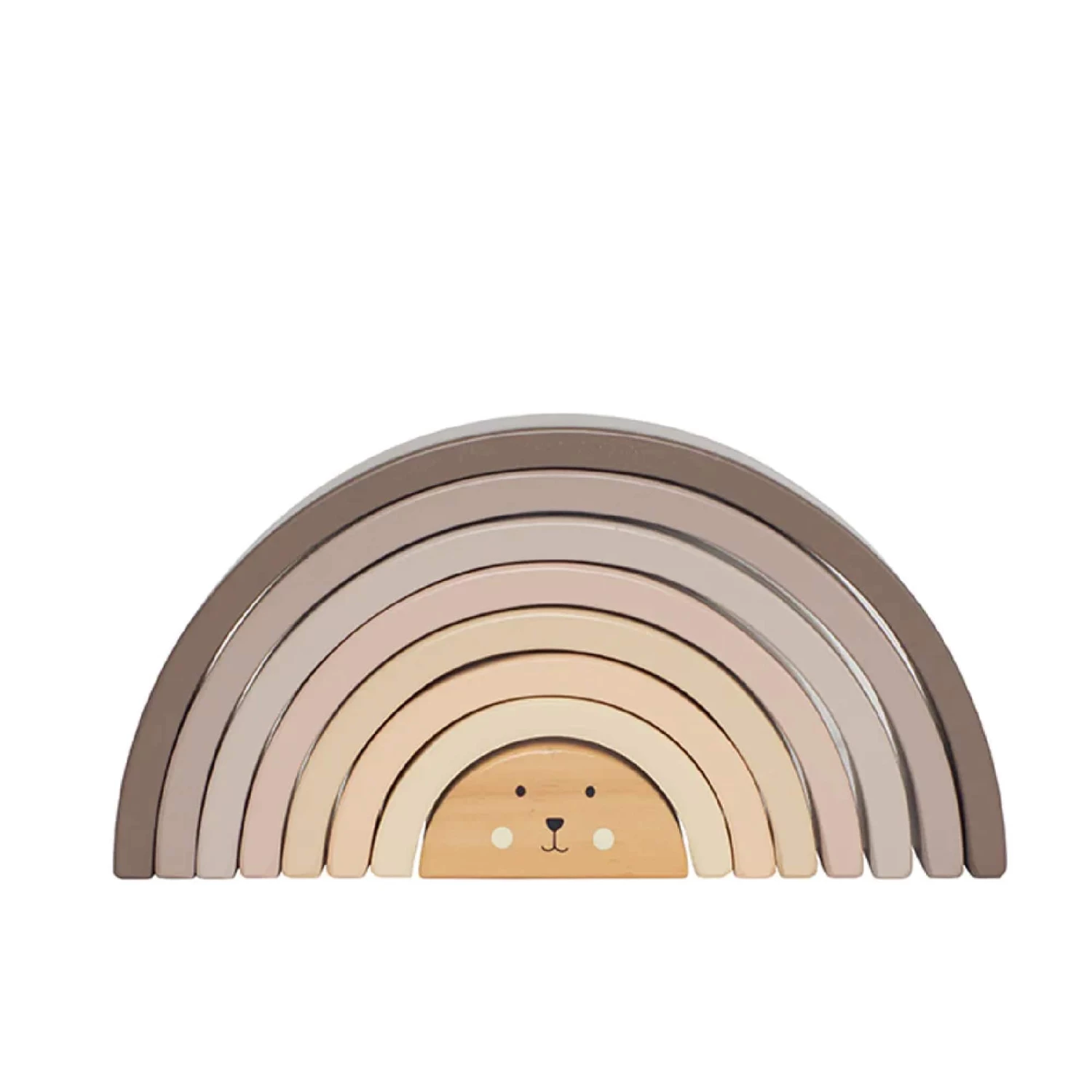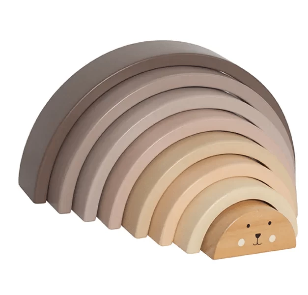 This wooden rainbow consists of eight different parts. Each part can be played with separately or together as a stacking toy. Why not build exciting tunnels, small houses for dolls, or bridges for the favourite car. Only the child’s imagination sets the limits. Encourages creative playing.