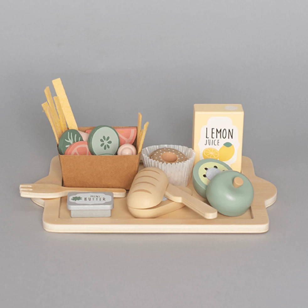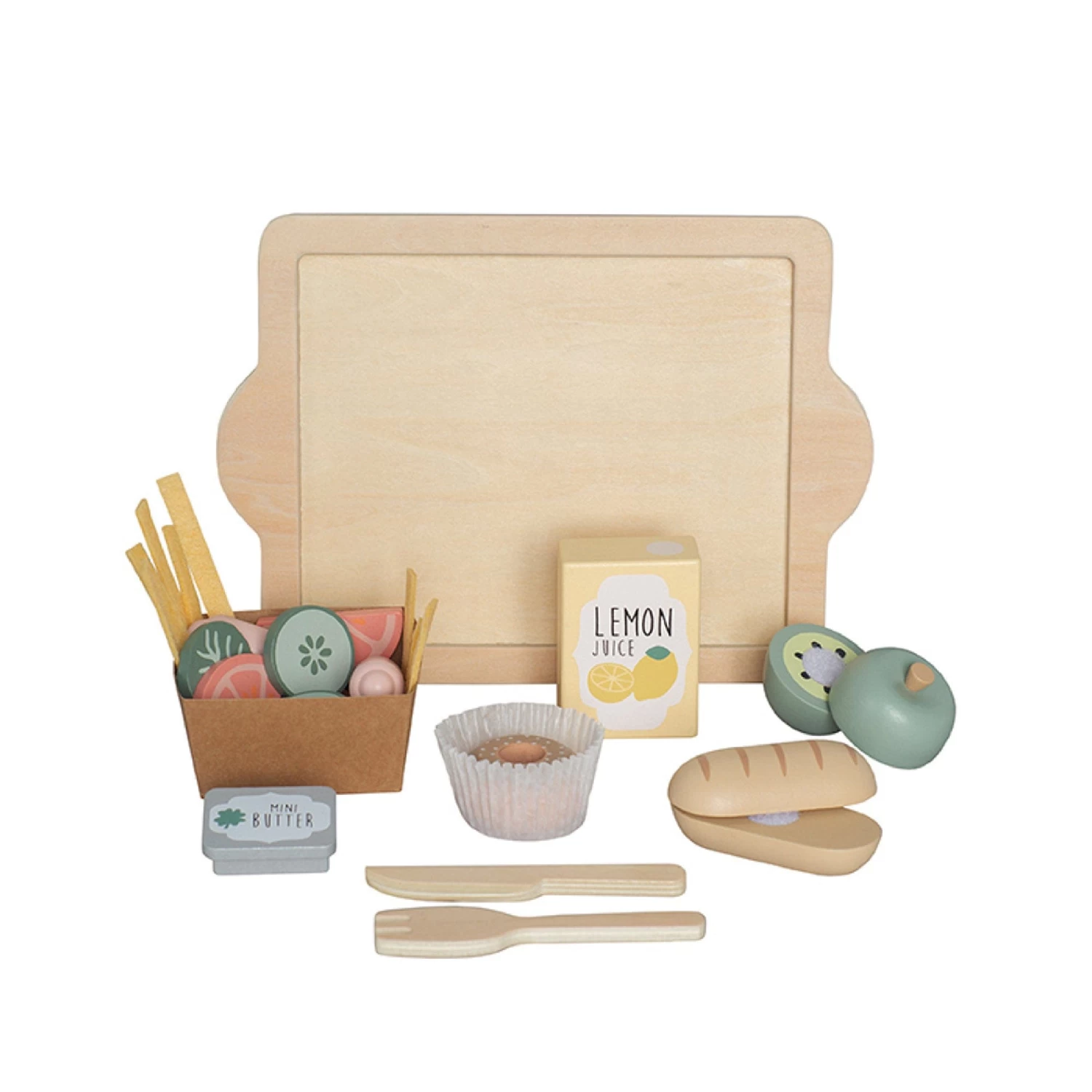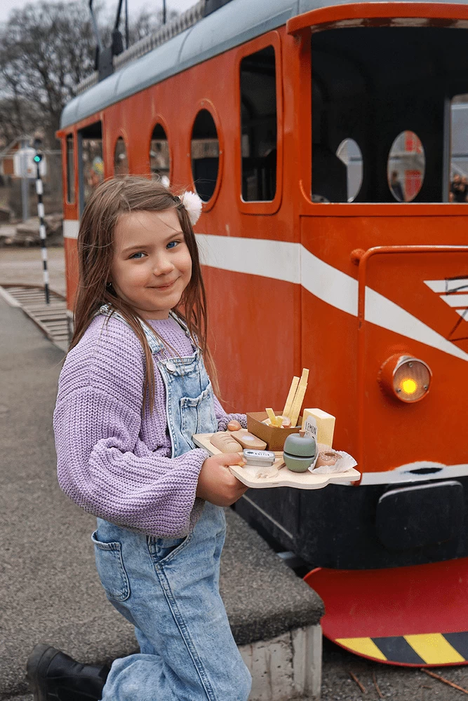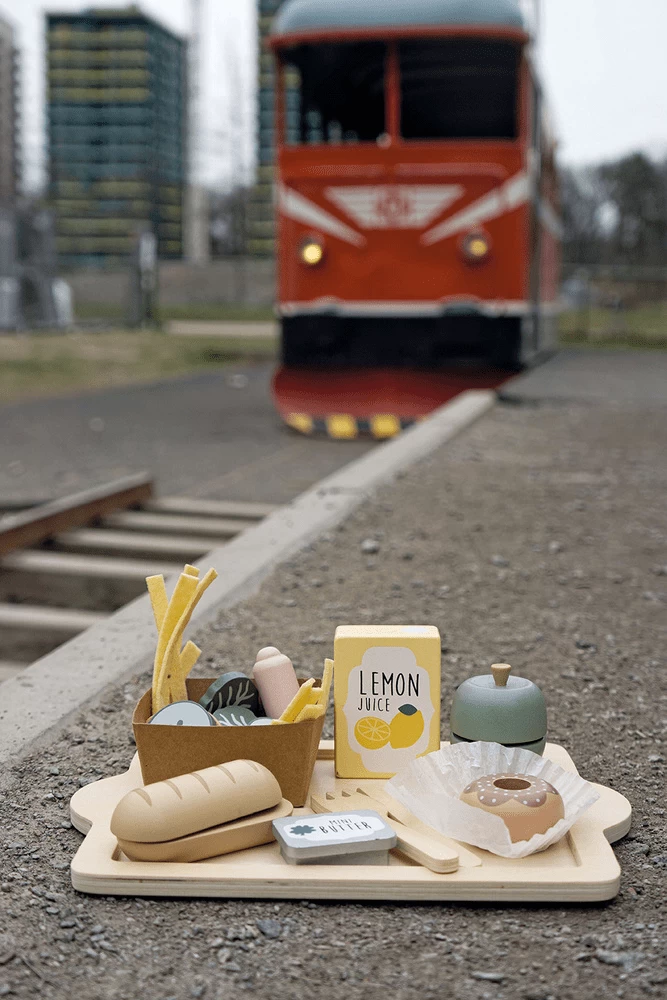 An imaginative food tray with everything you can think of. Combine different tasty meals and serve your guests. How about, for example, a yummy baguette with freshly squeezed juice or a luxurious coffee with donut and drink. On this tray, almost the entire dietary circle is represented and only the imagination sets limits to what is served. The food tray contains: