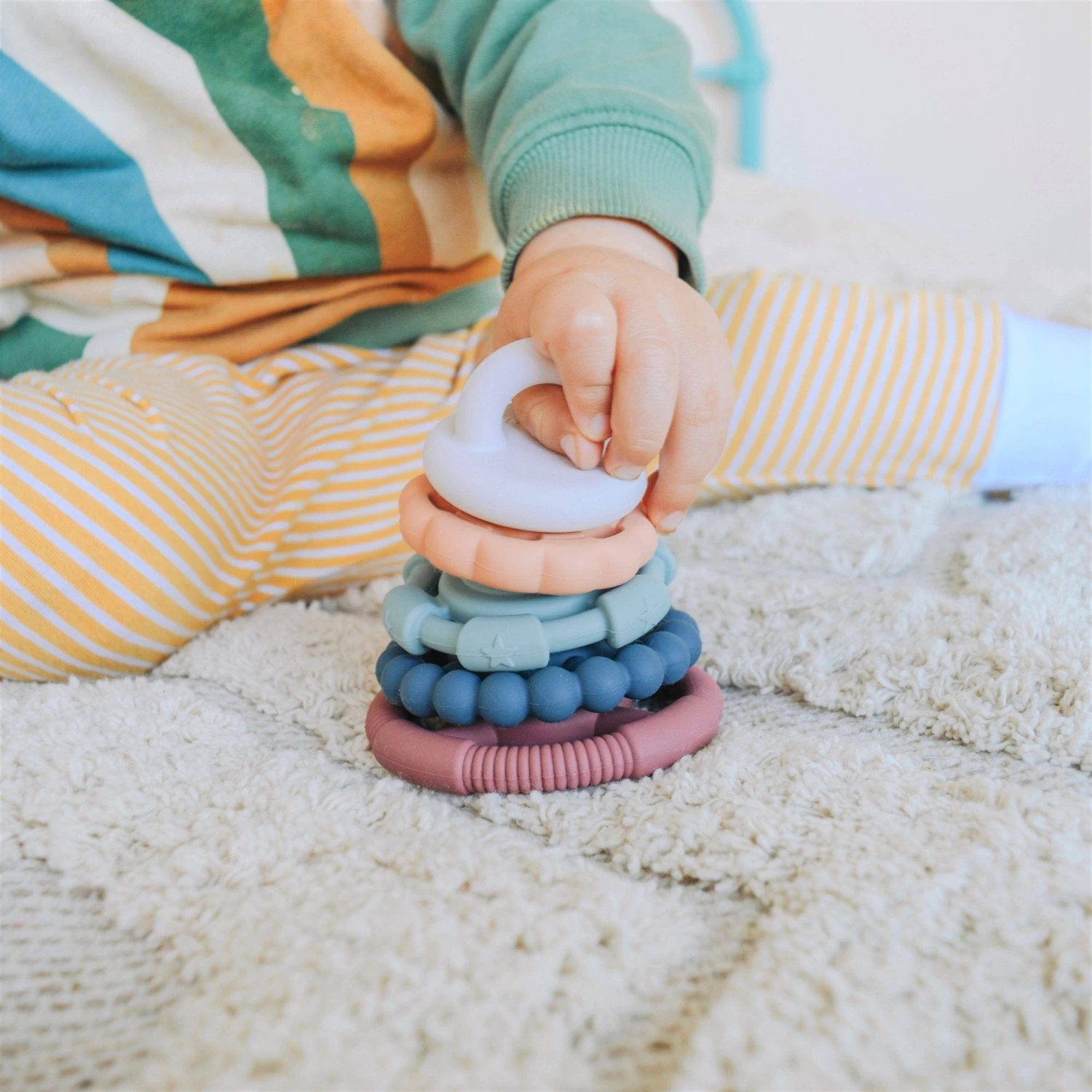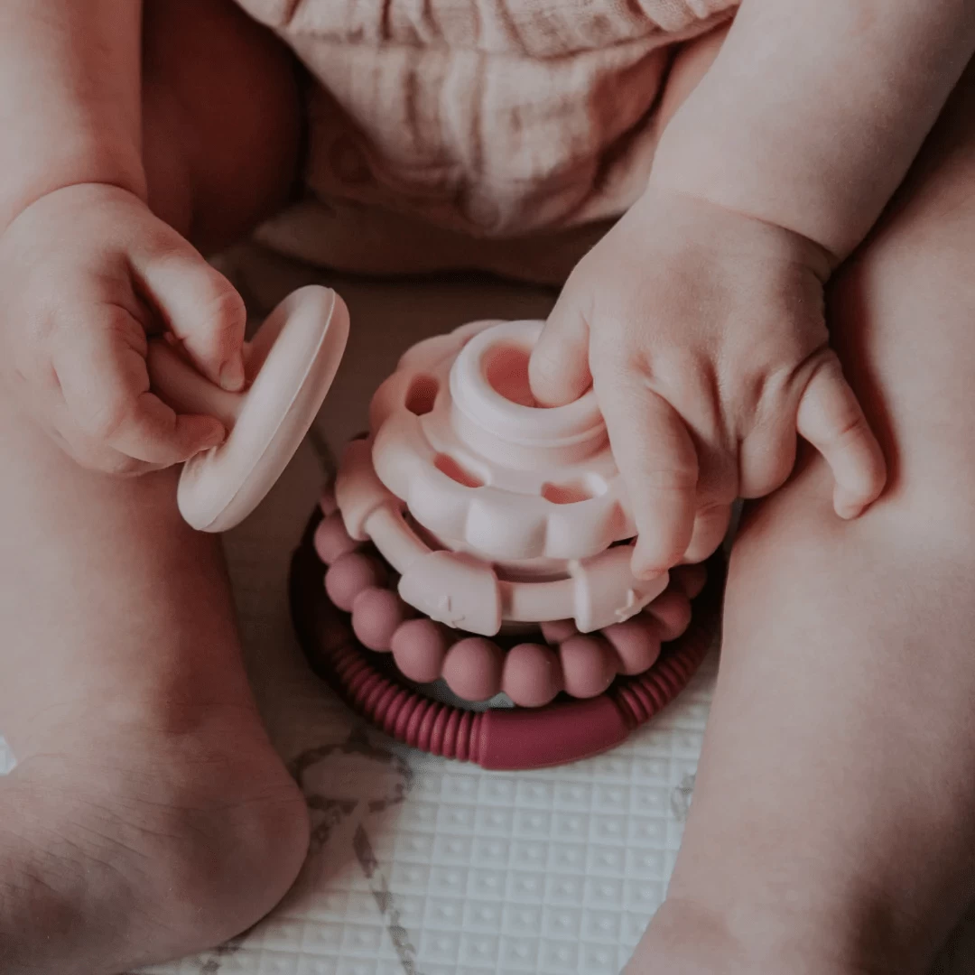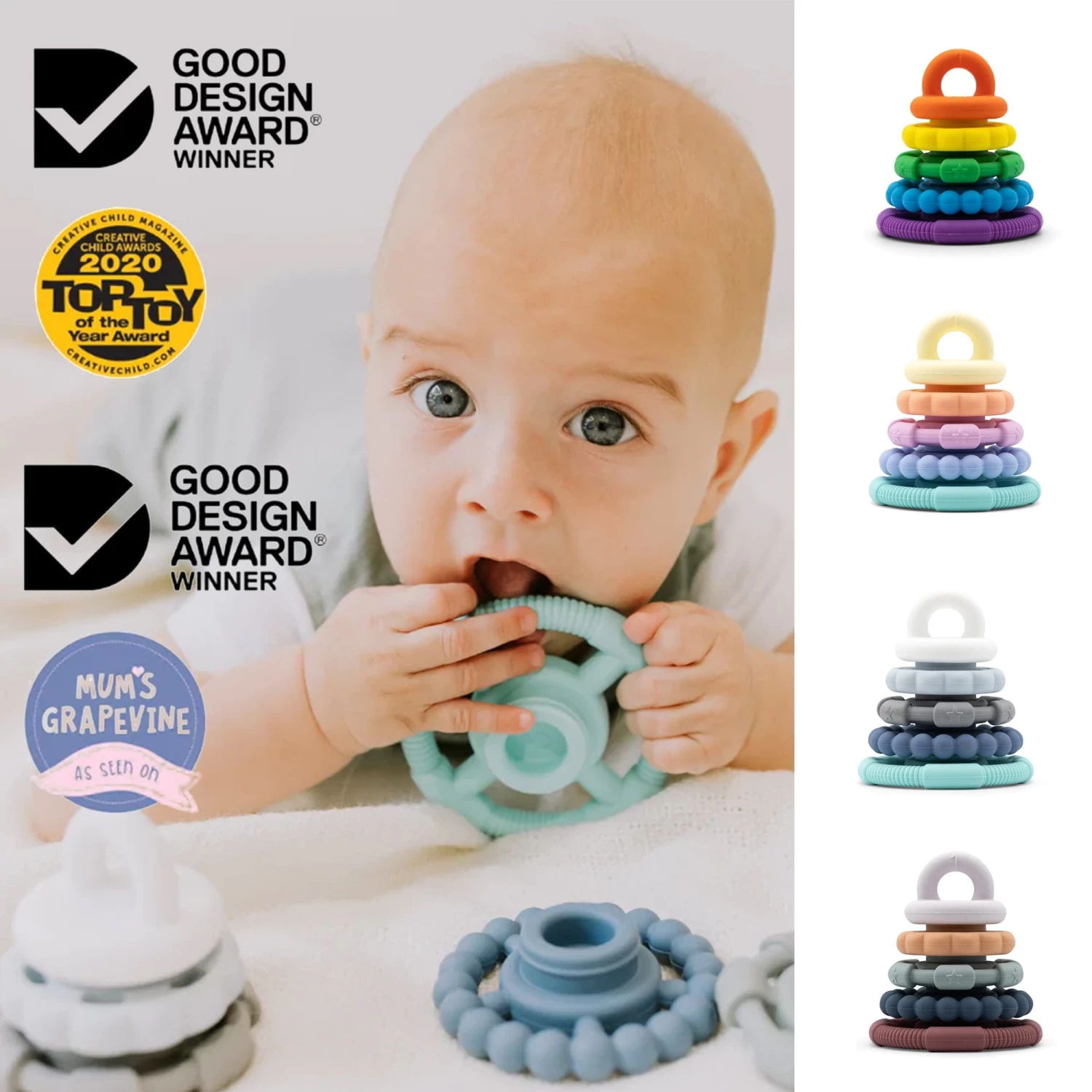 The Jellystone Designs Silicone Teether Stacker is made from non-toxic and BPA free food grade silicone and it is safe to place in the dishwasher, in the freezer or to sterilise with boilng water.