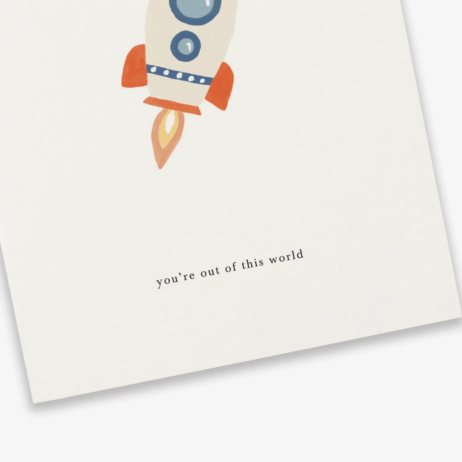 Show your gratitude and make someone’s day with this simple, illustrated greeting card stating: you’re out of this world.Â