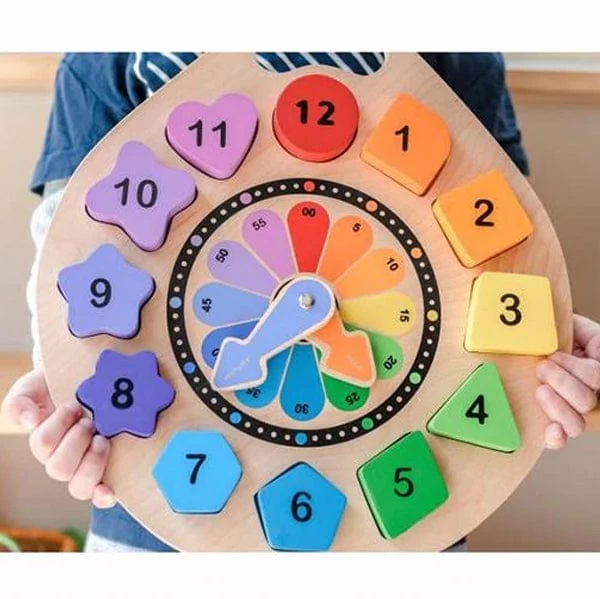 This educational Wooden Clock Puzzle by Kiddie Connect is a great tool to learn the time, practice sorting and number sequencing. With movable hands and lots of bright colours this puzzle is a fantastic way to introduce the concept of time.
