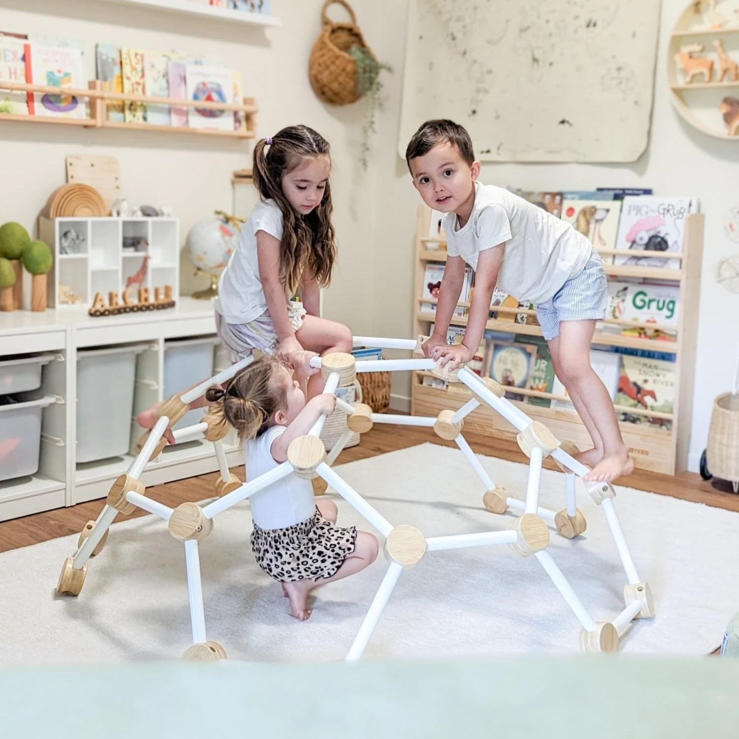 The Climbing Dome can be used in conjunction with the new HipKids Balance Beams and HipKids Montessori Stepping Stones. These are sold separately.
