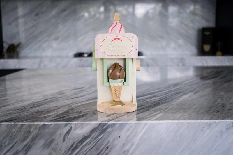 Whip up unlimited ice creams with your very own soft-serve machine! Decorated in delicate pastel retro colours, a touch of golden paint and unique illustrations bringing it to life. The gorgeous design features a cone holder on the base, a moving lever, and a flavour switch. The full set comes with 2 magnetic cones and 2 ice creams.