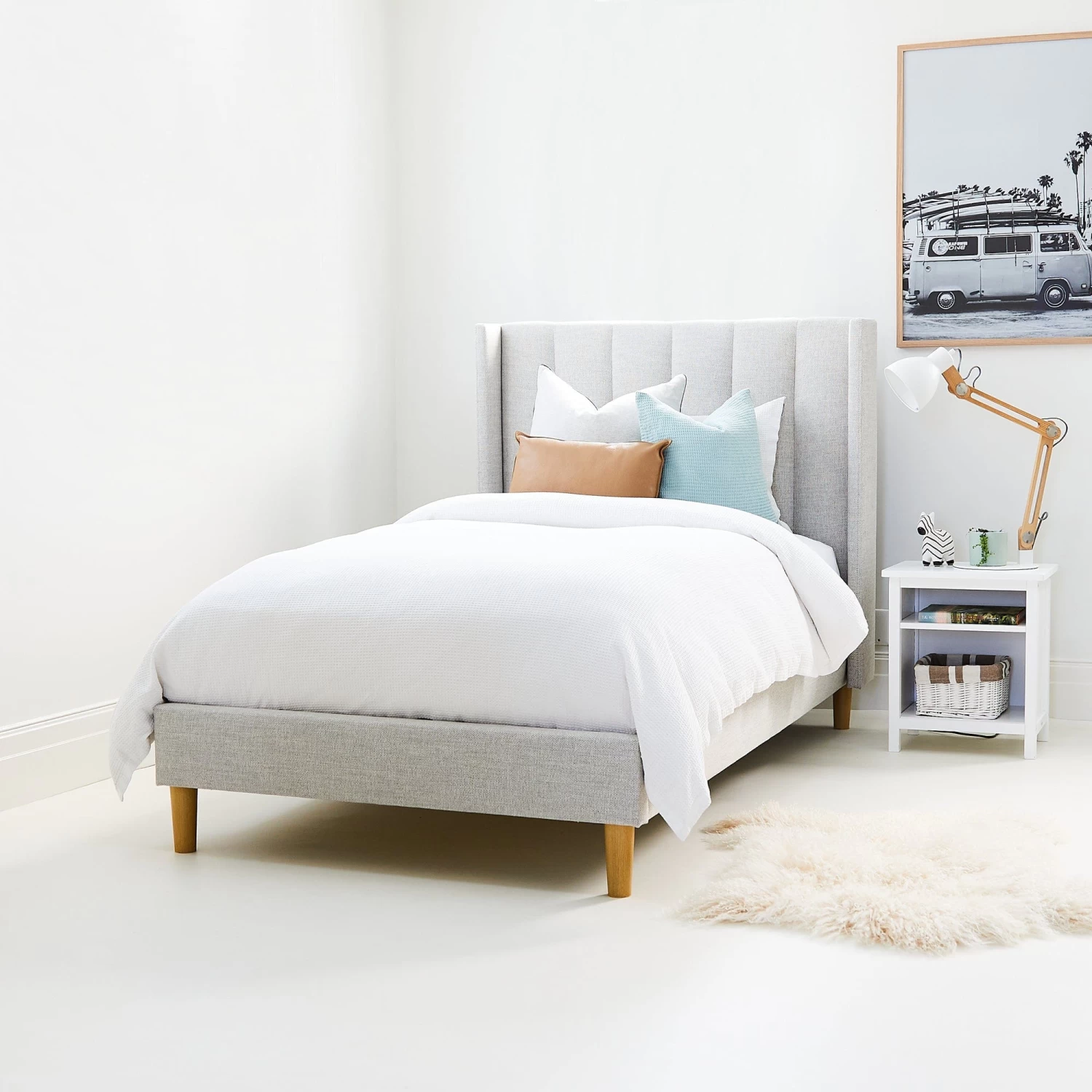 Please Note: The Liberty upholstered bed is delivered flat-packed in 4 oversize cartons: 1 x headboard, 1 x headboard wings, 1 x side-rails and 1 x wooden slats.