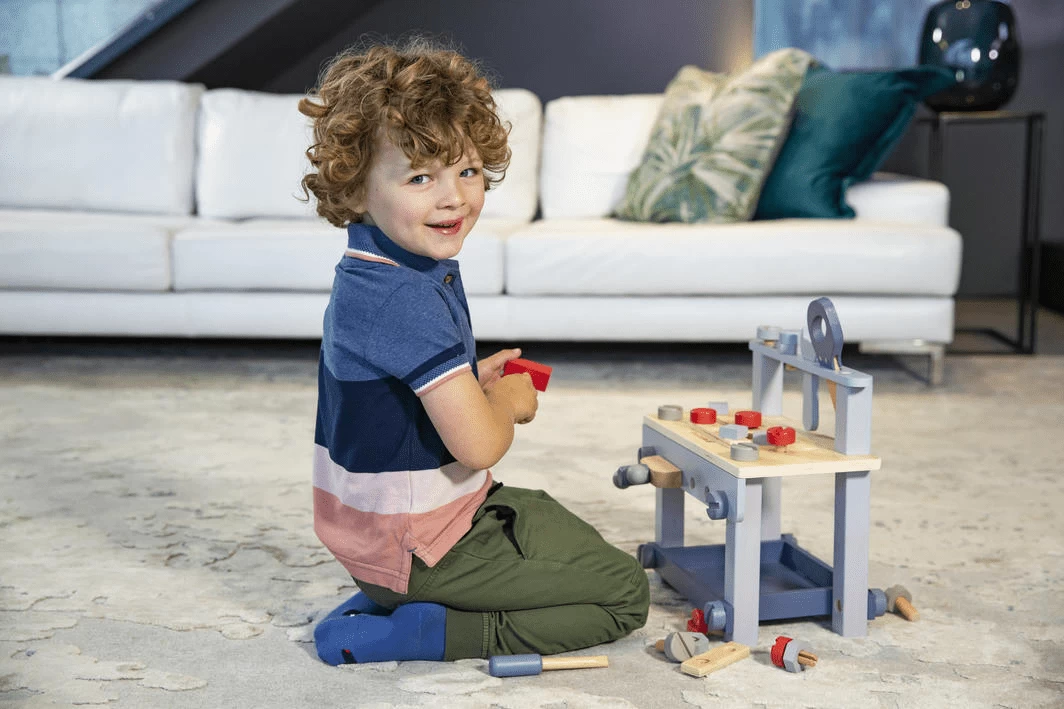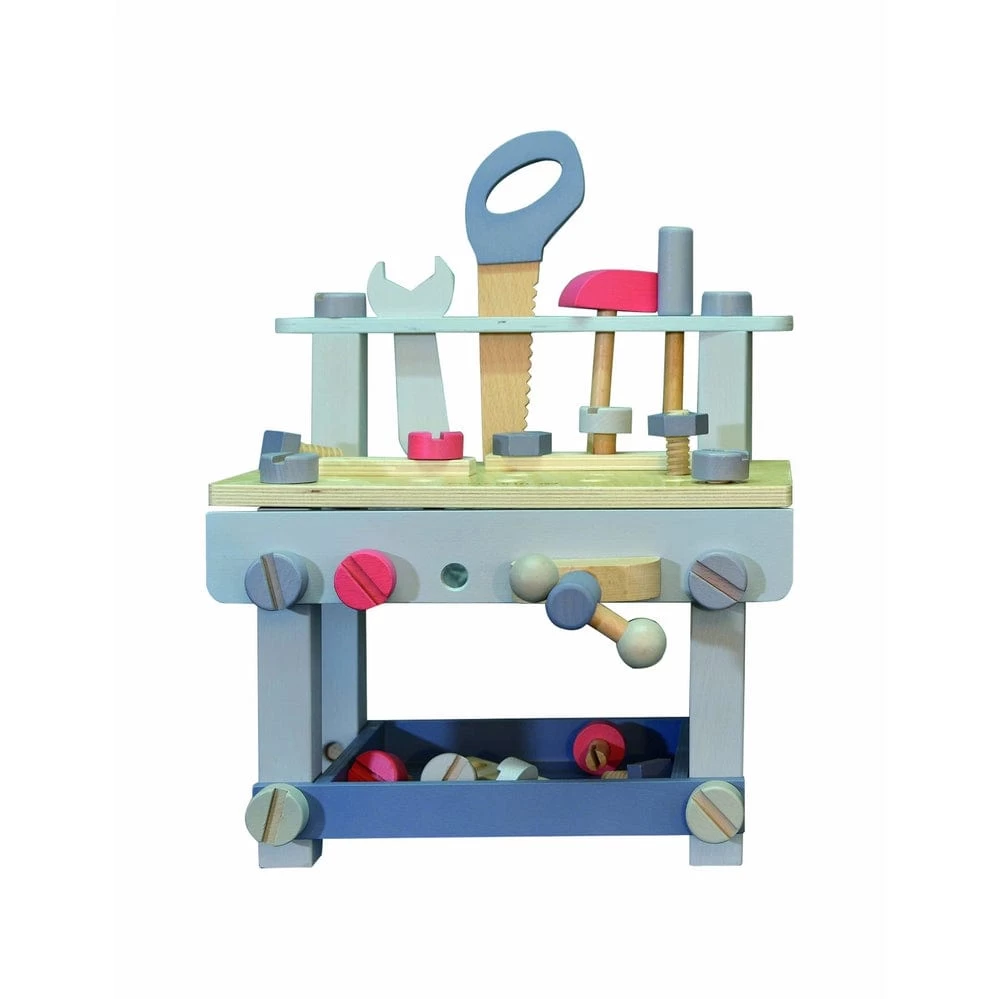 Little kids love playing with tools. Teach your child about different jobs and how tools can be used to make things. This set comes includes saw, wrench, hammer, easel, nuts and bolts, storage compartment, vice and other removal parts.