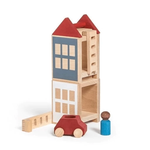 Build a home, go for a ride, park your car, climb up the little ladders and bring your little Lubu person home. Our Lubu Town Mini sets allow kids to imagine stories and play in a very creative way. The Lubu Town Mini sets come with two stackable houses with two ladders, one roof and one toy car with a little wooden driver. This unique toy with a minimalist yet thought-through design lets kids enjoy a fun time with their own constructions, the wooden toy car and the little peg person.