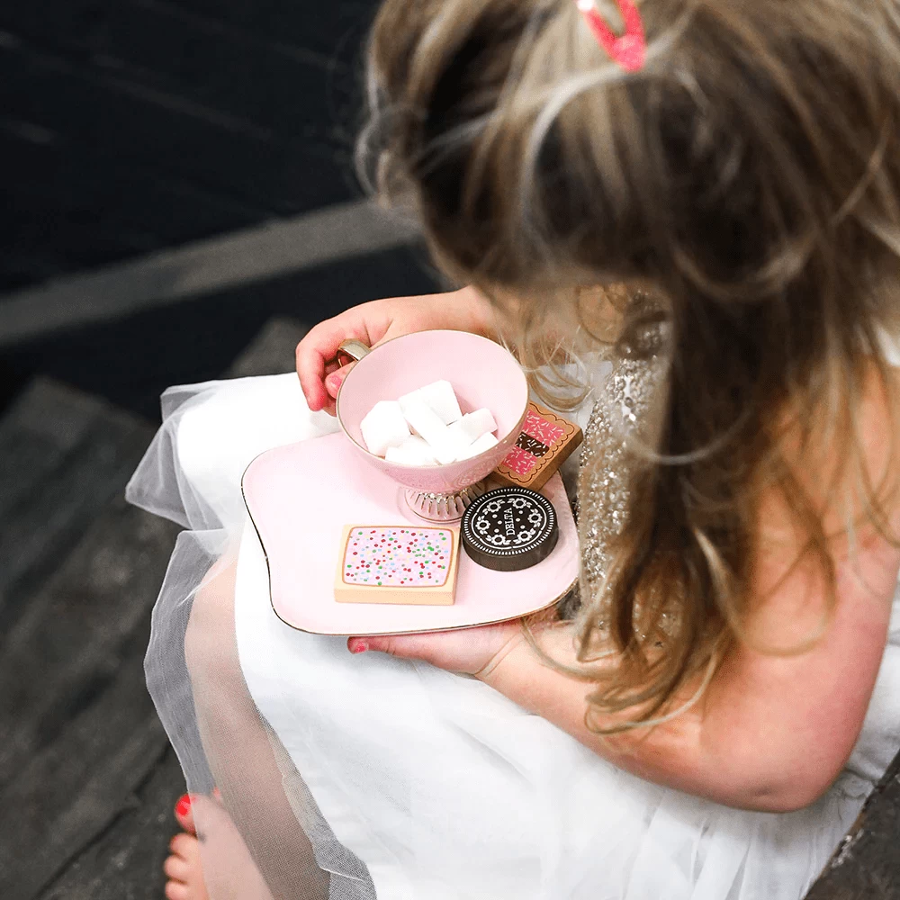 Each biscuit is made of wood and makes a great accessory to any tea party or kitchen set. On the reverse of each biscuit has number to make learning one to ten yum! It also comes with a handy beautiful tin to pack them all away after the tea party.
