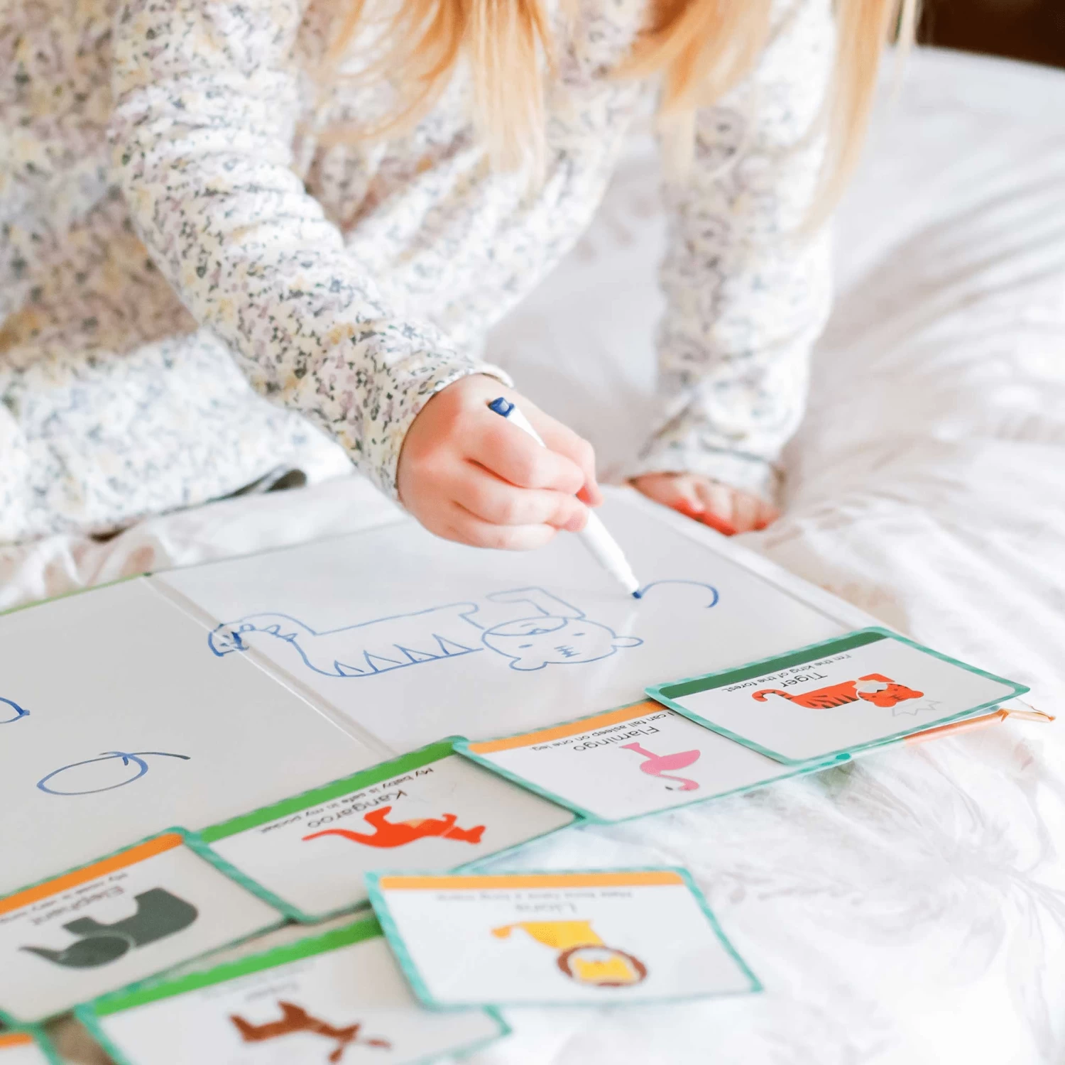 - Includes: Magnetic case x1, wipe-clean marker x1, cards x8-15, magnets x50-70