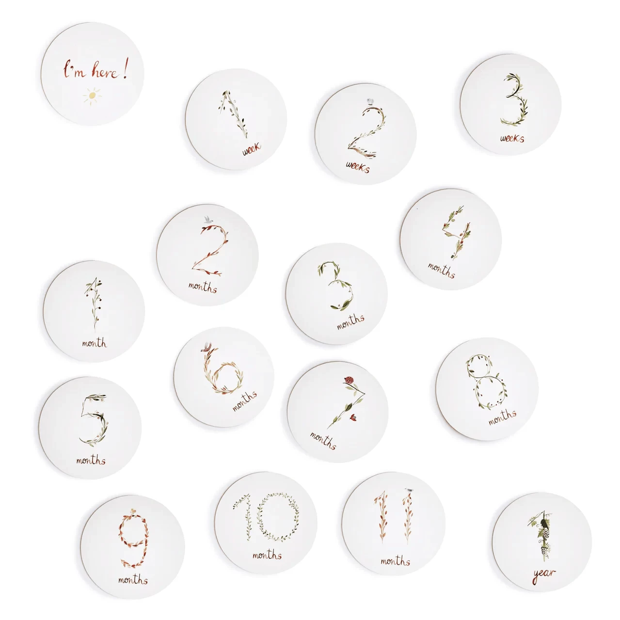 Document the growth of your new baby with this set of 16 beautifully-illustrated milestone cards, lovingly designed in Sweden. Each double-sided card displays whimsical watercolor designs and dedicated space for you to capture memories, thoughts, and notes to your baby as they grow.Â
