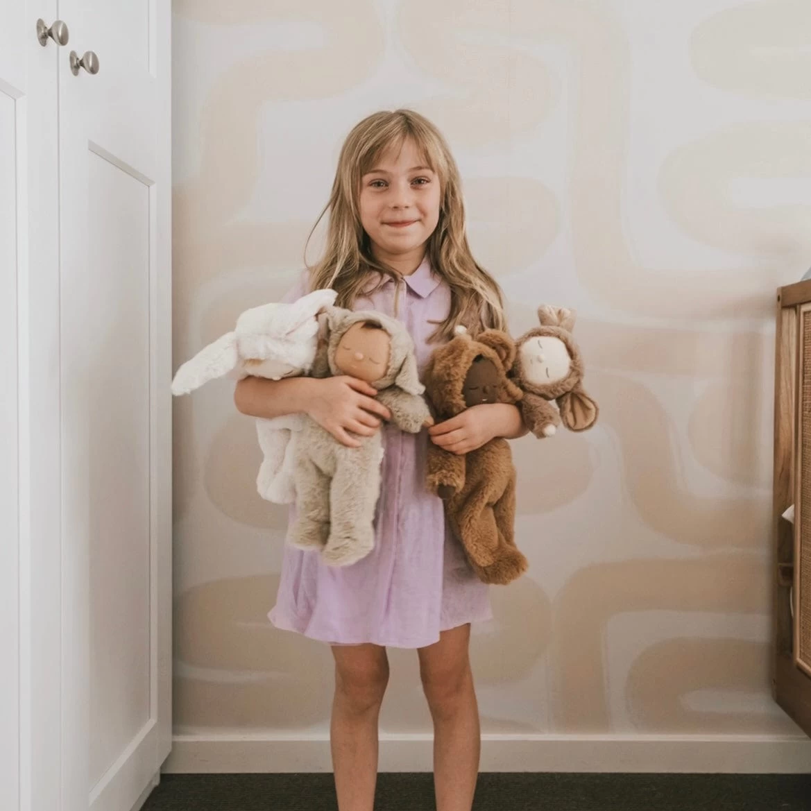 Bunny Moppet is a beautiful gift for newborn babies or would make a lovely addition to your Dinkum Doll family for older kids too.