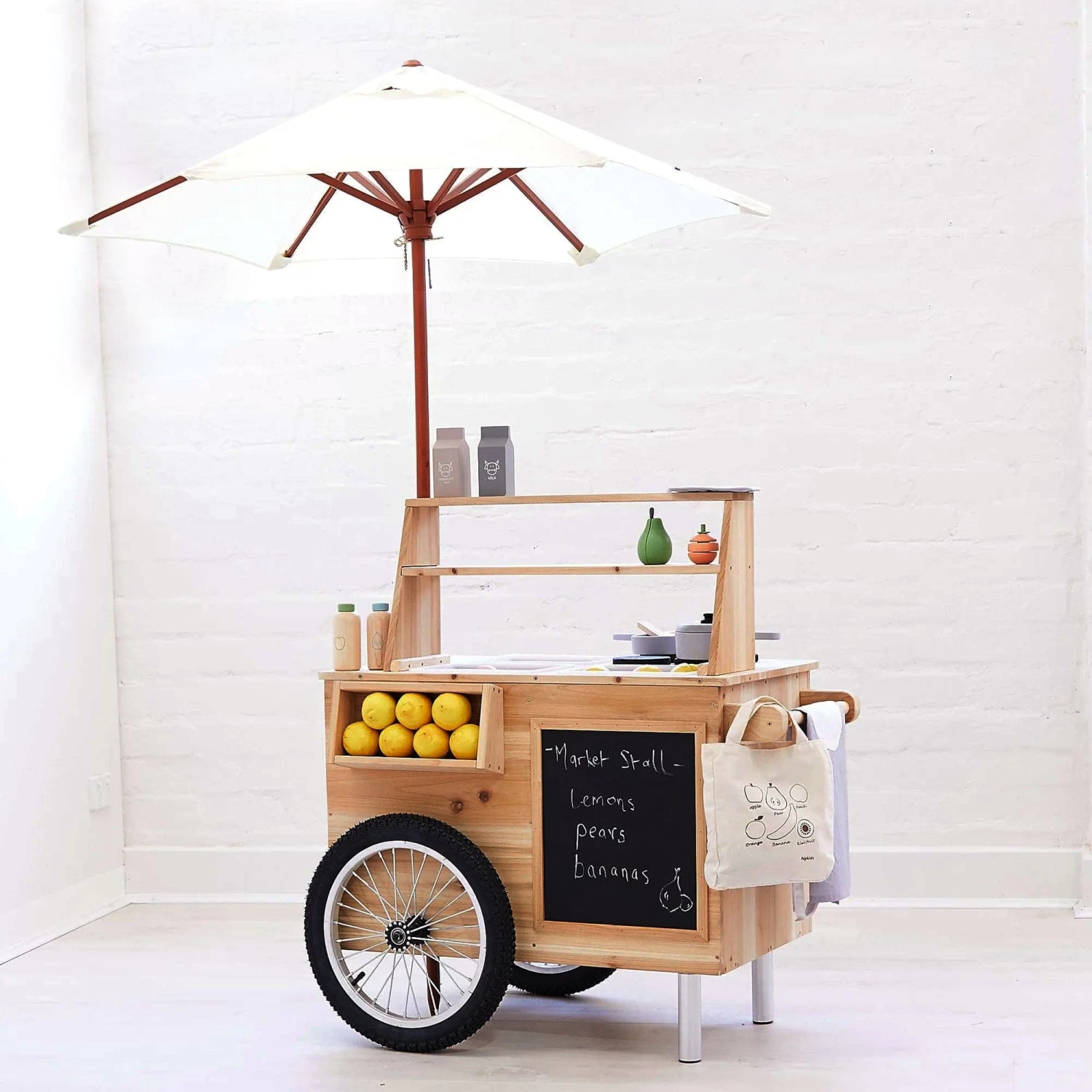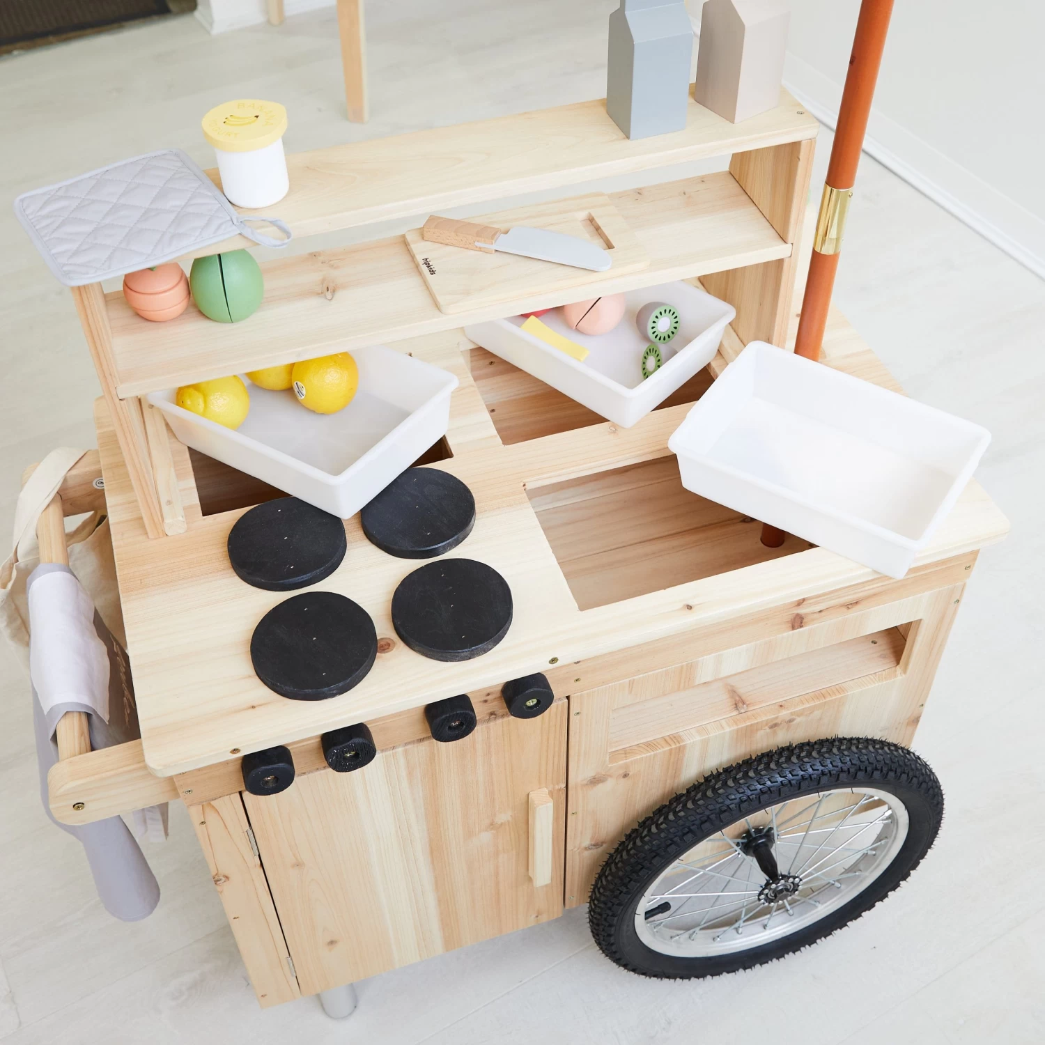 Whether your child dreams of running a bustling cafe, setting up a vibrant fruit shop, managing a restaurant, or owning a sunny lemonade stand, this multi-functional cart is perfect for pretend play activities.