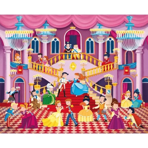 The ballroom’s decorated, the candles have been lit, the guests have arrived: everything is ready for magical evening of the Grand Ball! The princesses are wearing their prettiest dresses. Join them in the castle, read the rhyming story and build the giant puzzle!