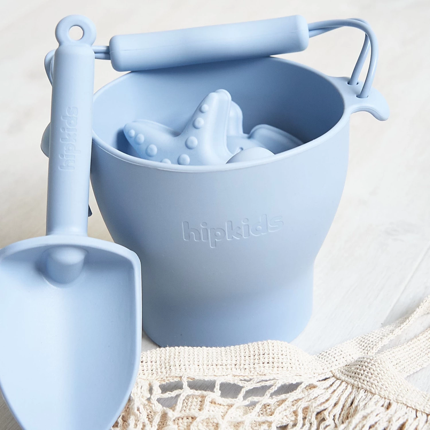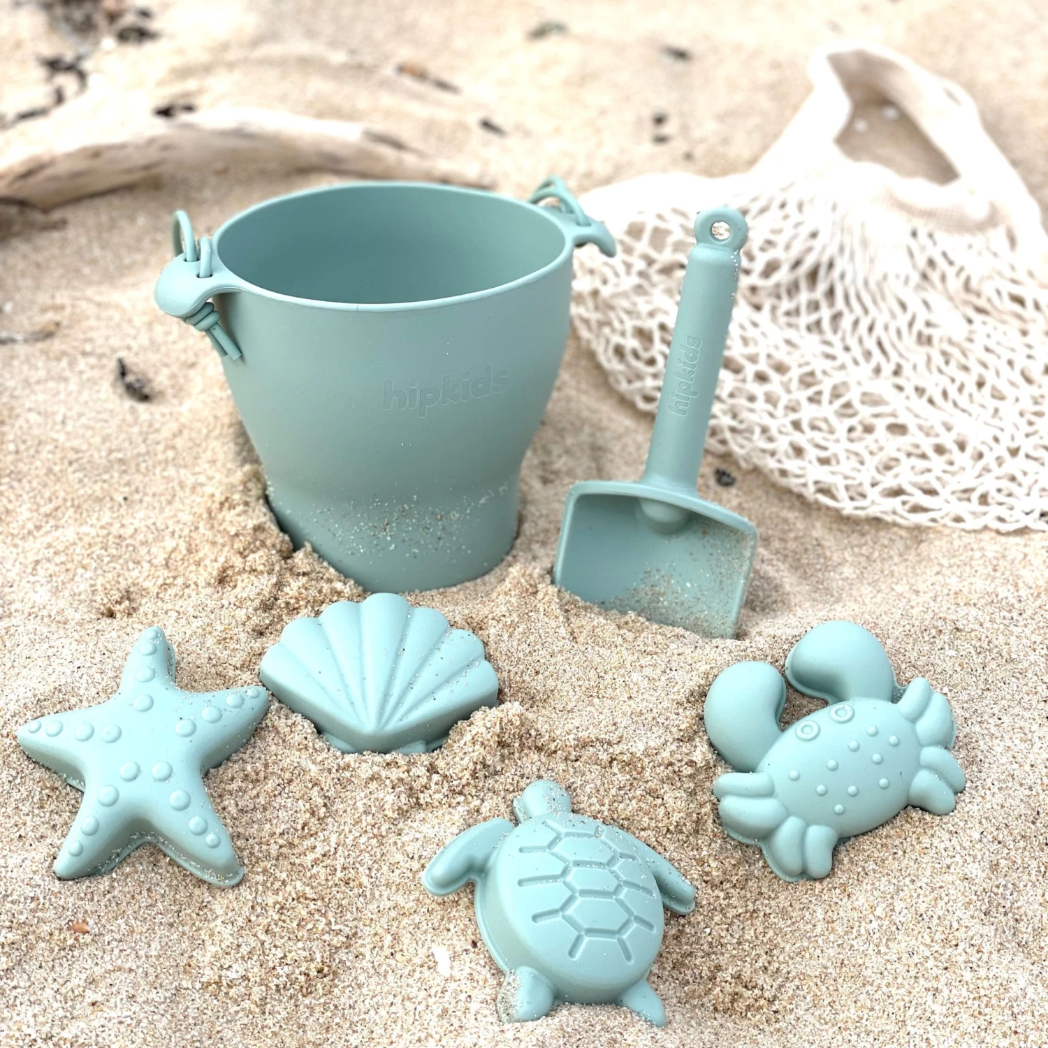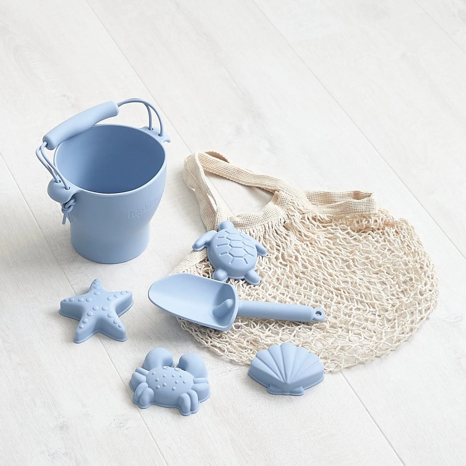 This Silicone Sand Play Set will become a staple for any beach trip or sand pit! The set includes a cute bucket, a spade, a set of 4 super soft silicone sand moulds and a handy carry bag!