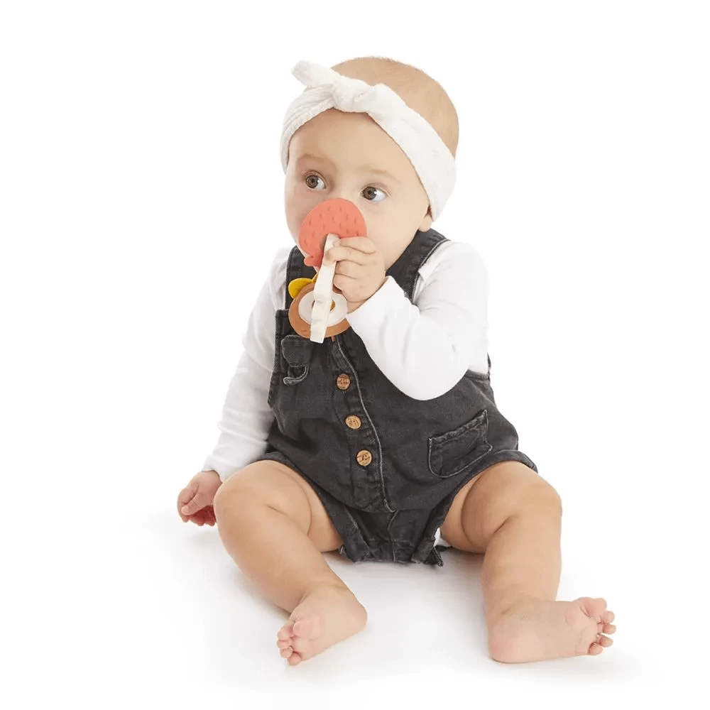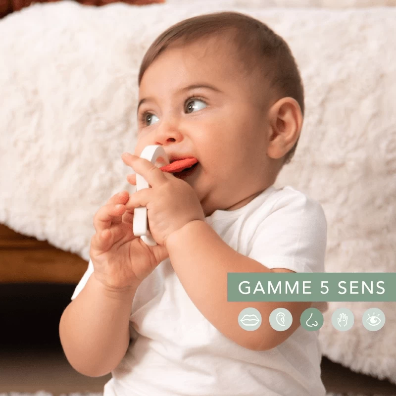 Easy to grasp and handle, the scent ring is composed of 3 medallions with the delicate sweet smell of vanilla, strawberry and coconut. Subtle and light, each scent awakens a baby’s sense of smell from the very first months and arouses his curiosity.