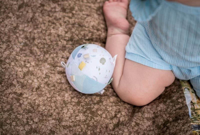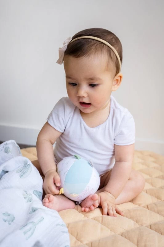 Entertain your little one with this lovely organic fabric ball. This ball is perfect for building fine motor skills and the little ribbon tags add a sweet sensory activity. The ball’s lightweight design makes it perfect for throwing and rolling, practising hand transfer, encouraging tummy time and playful crawling games.