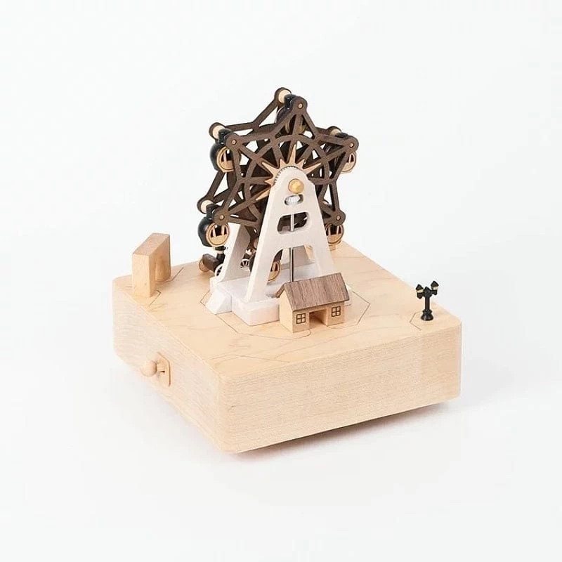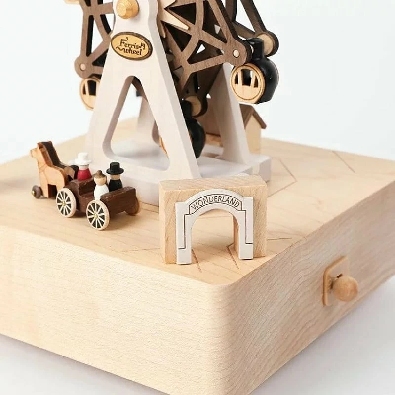 This Ferris Wheel Amusement Park music box by Wooderful is beautifully crafted and plays when music is turned on.