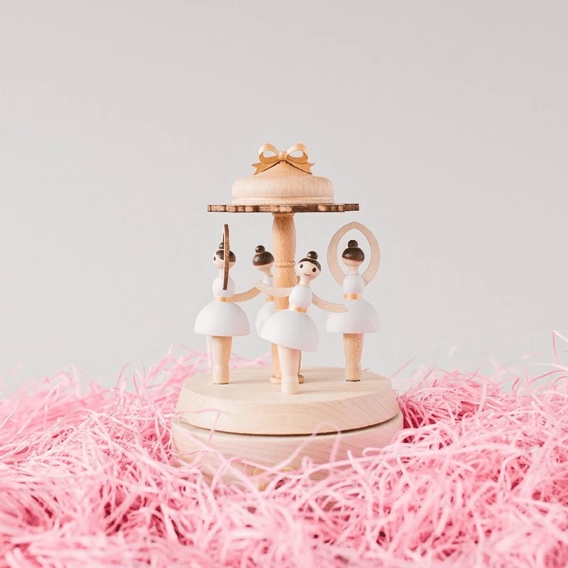 Pretty ballerinas twirl and spin beneath a gingerbread trimmed canopy while the tune “Waltz of the Flowers” plays in this beautiful handcrafted wooden music box.